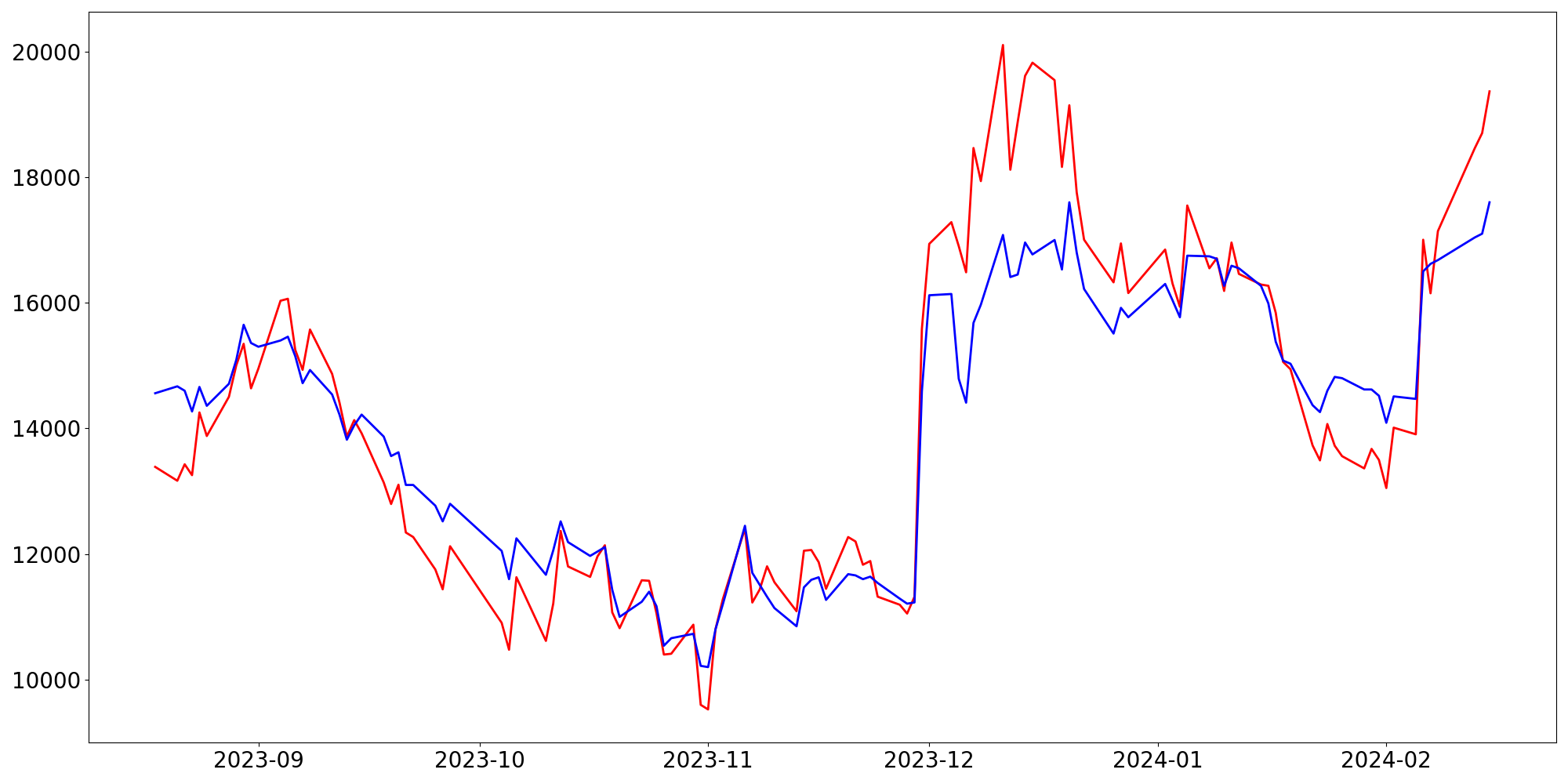 [ - : 실제값(종가) / - : 예측값(종가) ]