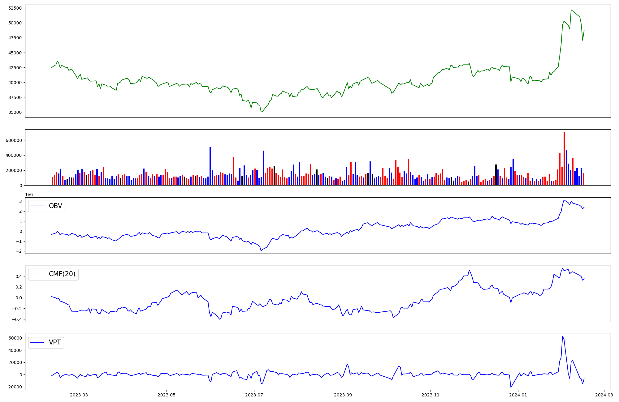 | OBV | CMF | VPT | |