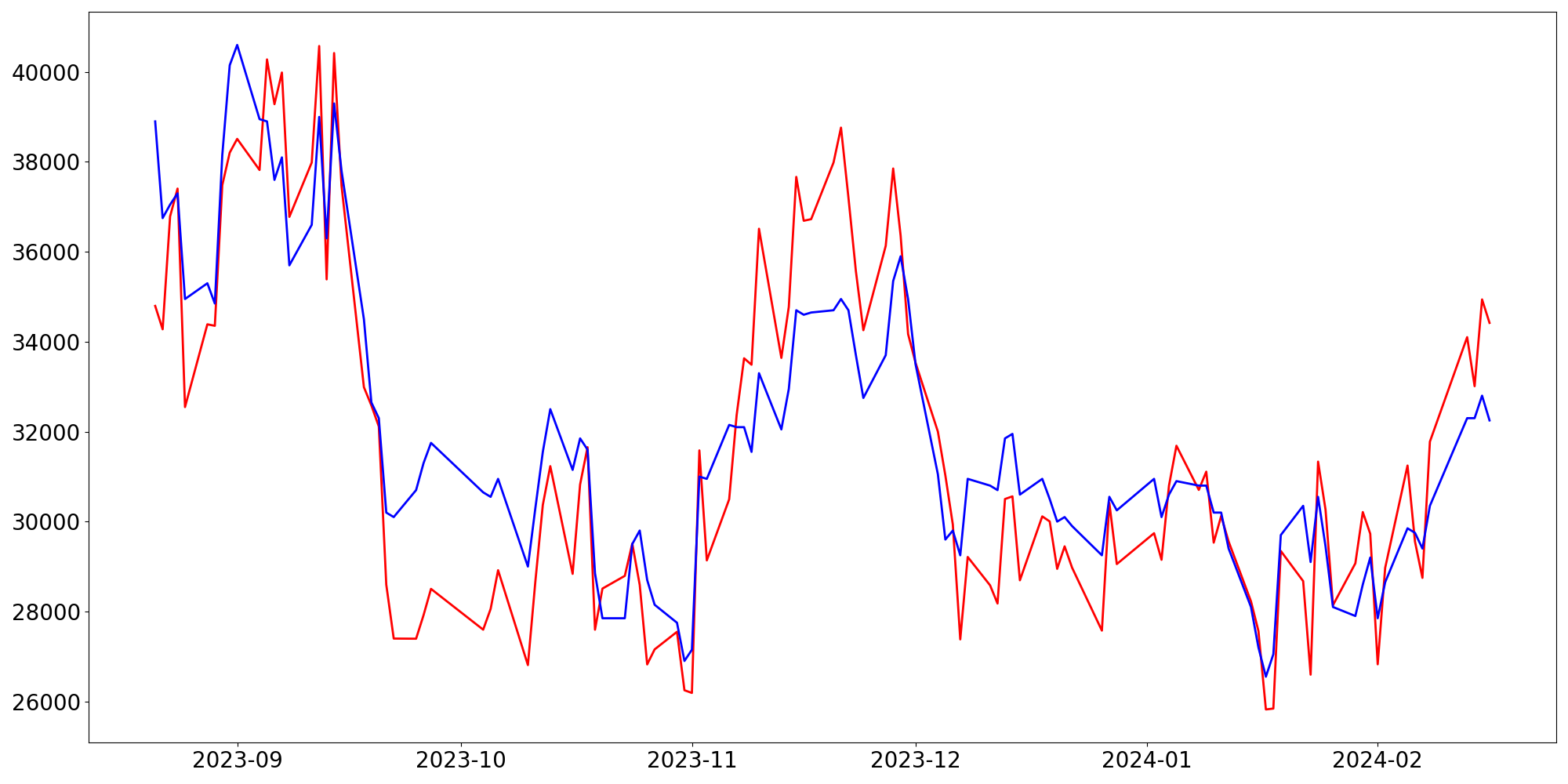 [ - : 실제값(종가) / - : 예측값(종가) ]