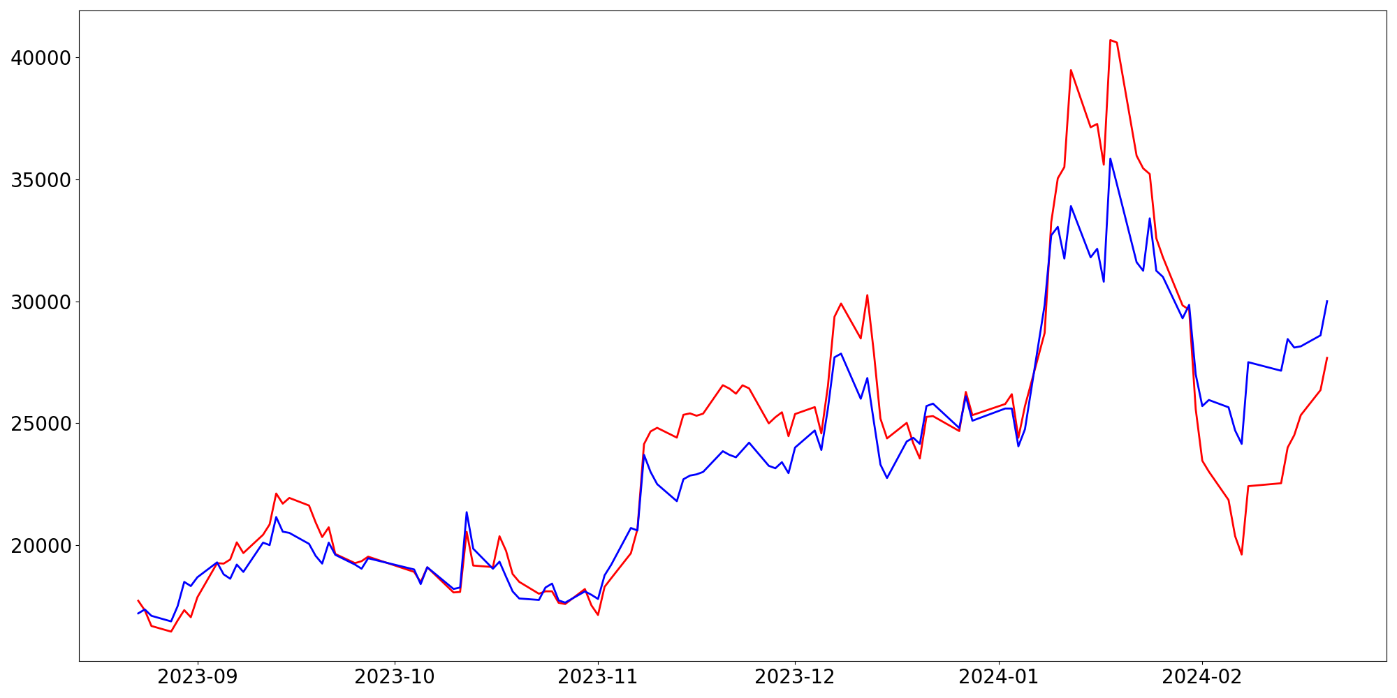 [ - : 실제값(종가) / - : 예측값(종가) ]