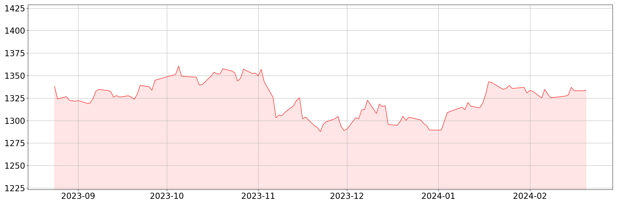 | 현재 | 1,333.80 | 0.80 | 0.06% |