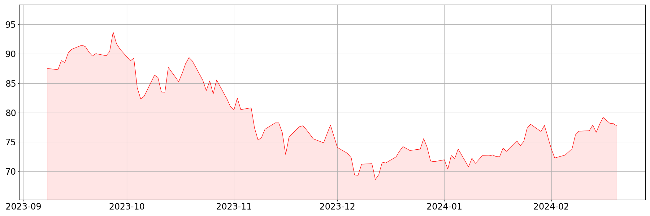 | 현재 | 77.73 | -0.38 | -0.49% |