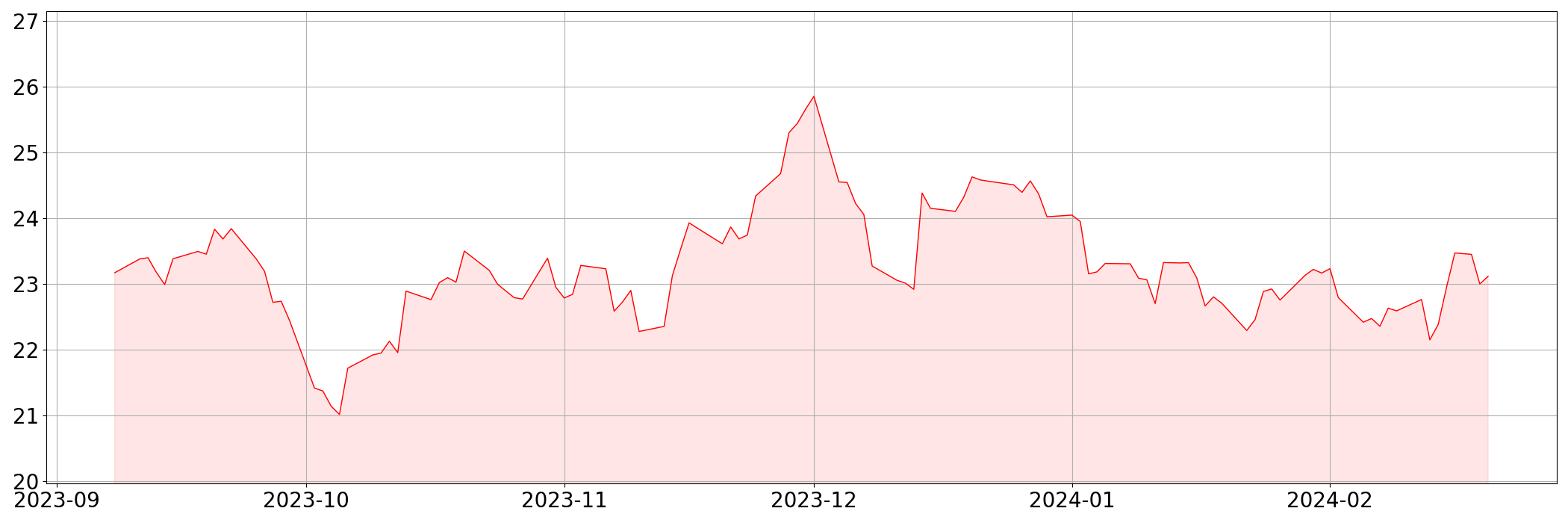 | 20일전 | 22.89 | 0.43 | 1.90% |