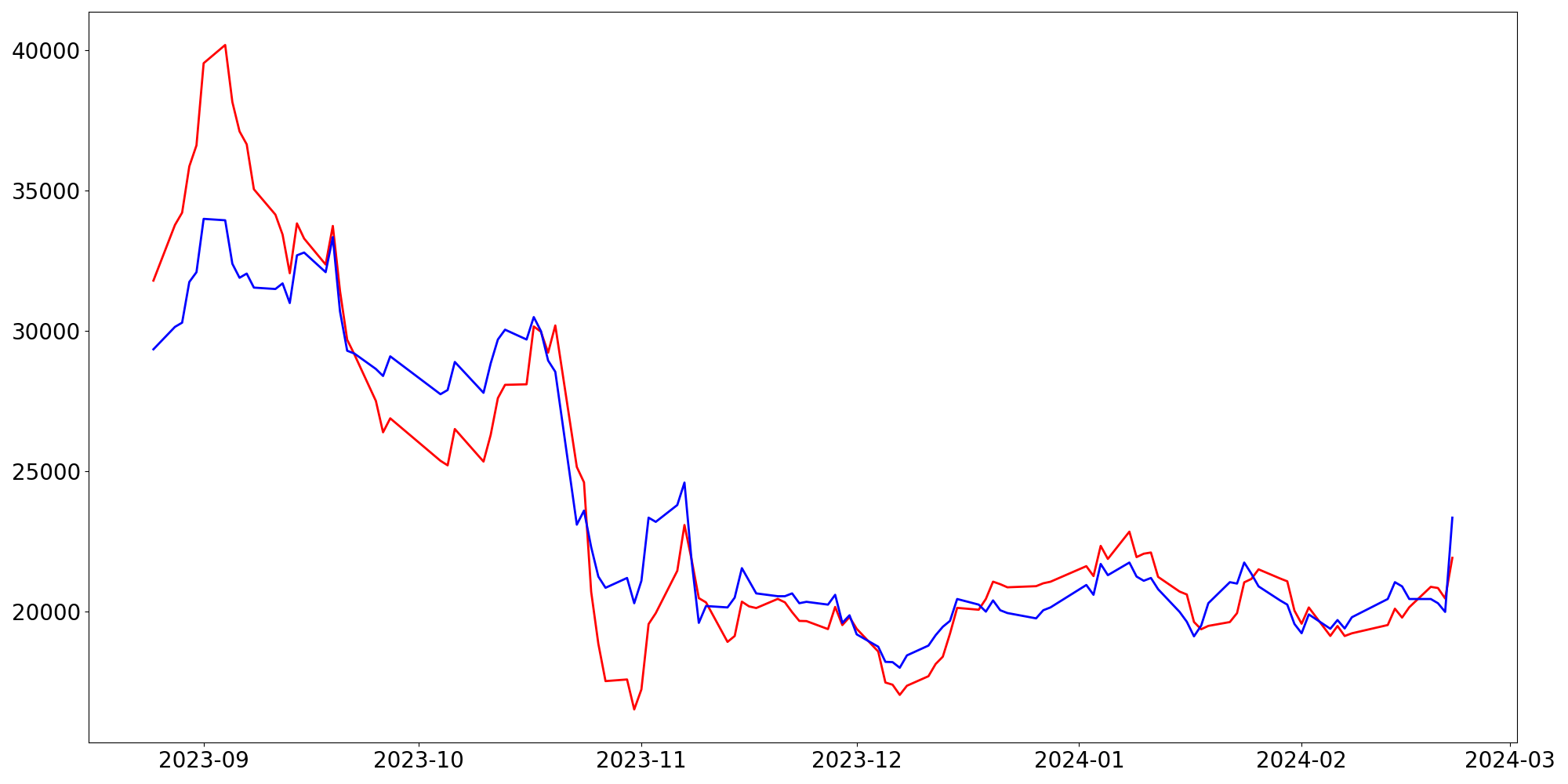 [ - : 실제값(종가) / - : 예측값(종가) ]