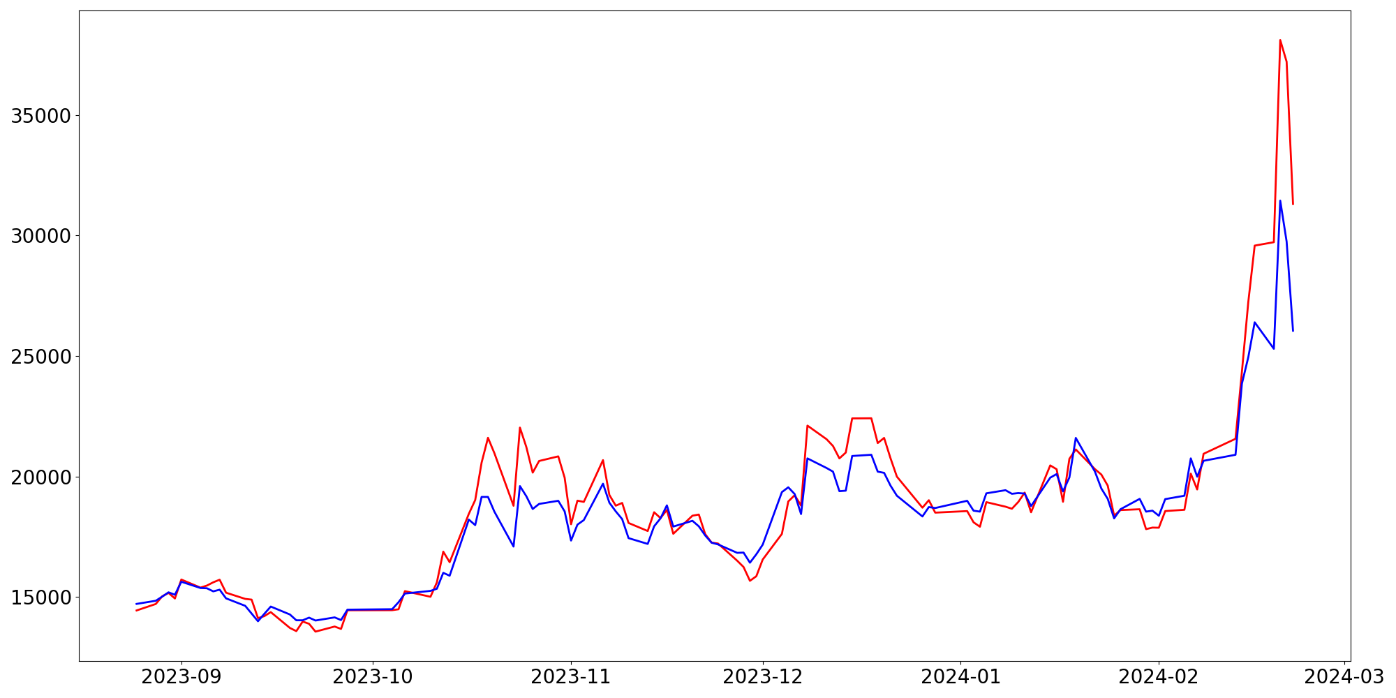 [ - : 실제값(종가) / - : 예측값(종가) ]