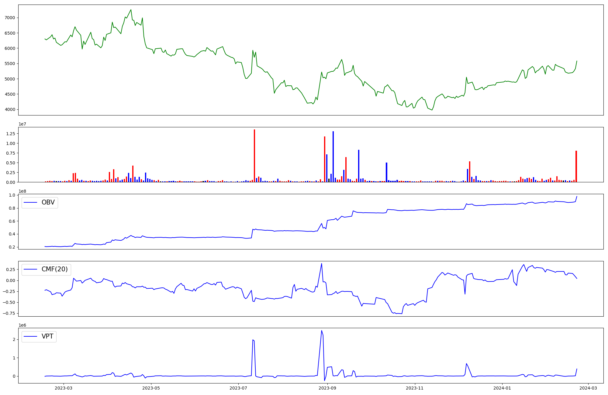 | OBV | CMF | VPT | |