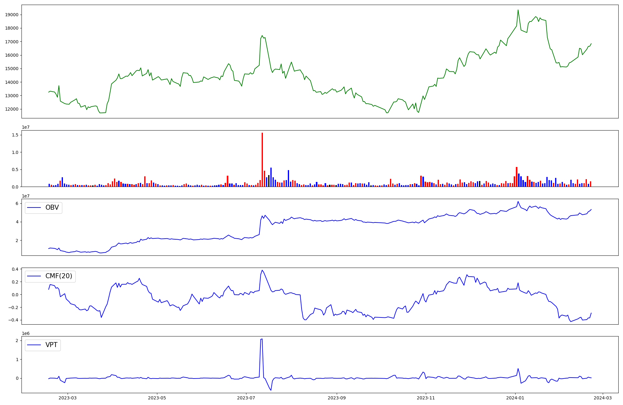 | OBV | CMF | VPT | |