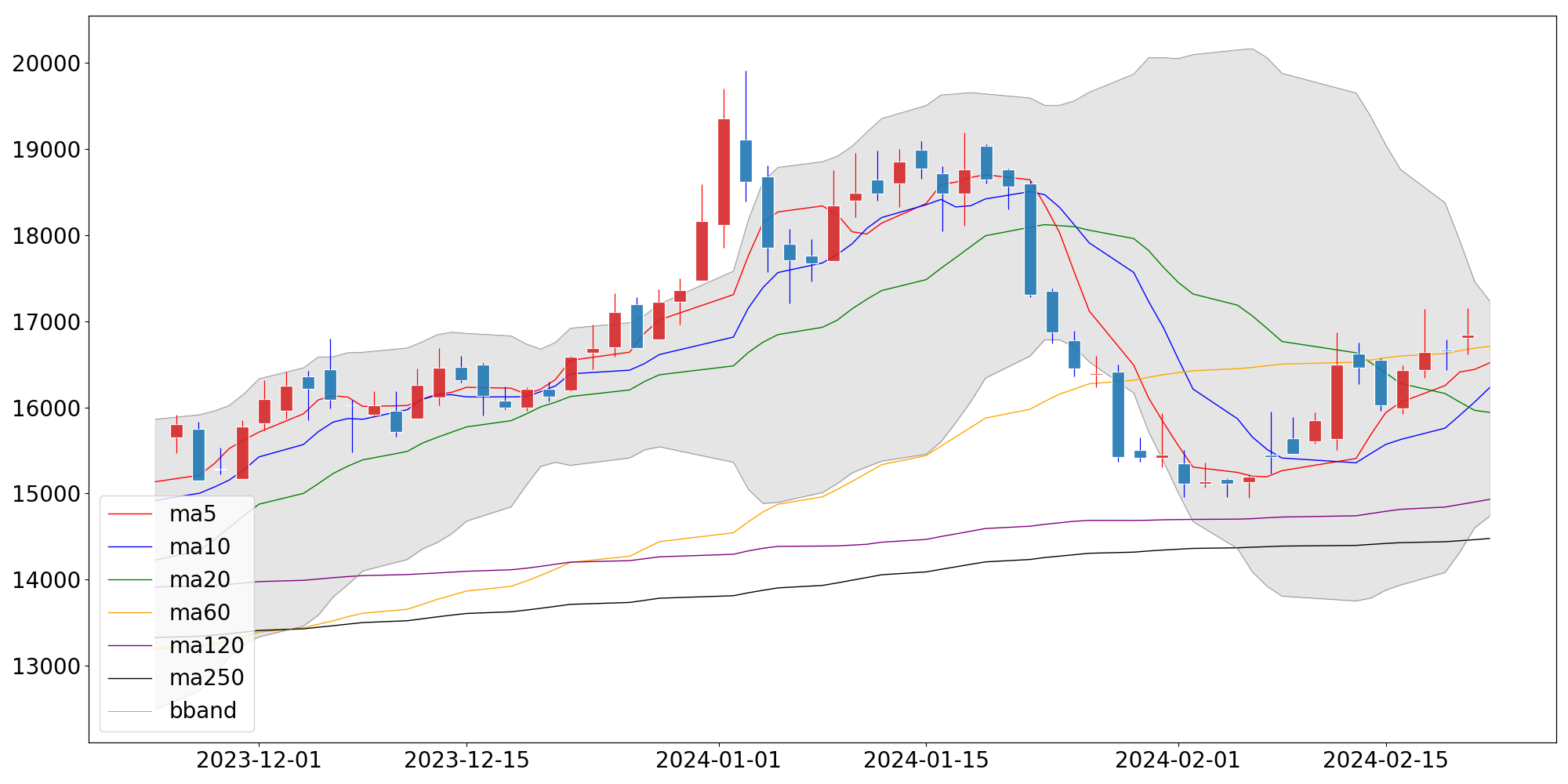 | 단순이동평균 | 16,707.00 | 14,930.75 | 14,477.60 |