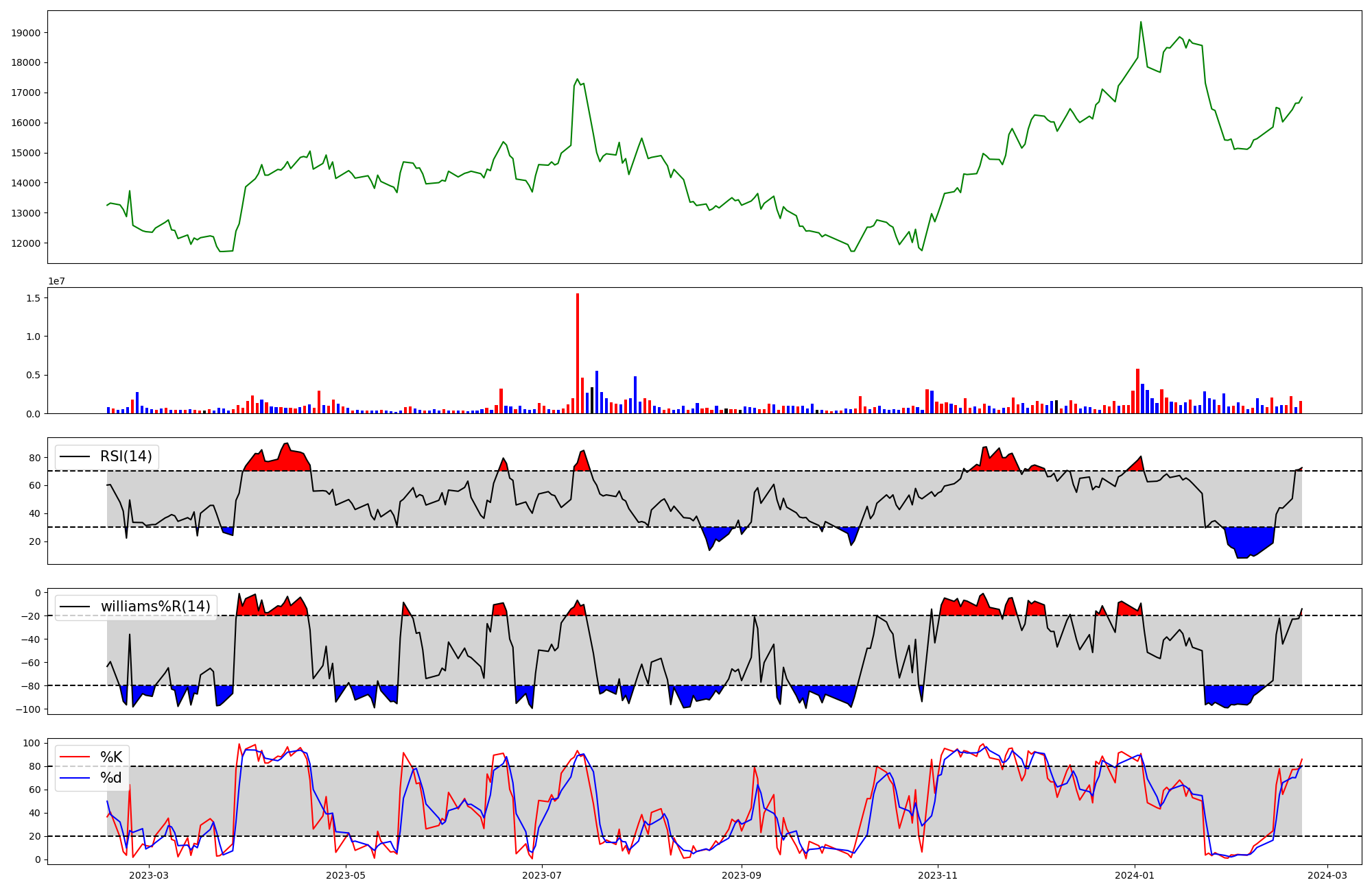 | RSI | Williams %R | stochastic(%K) | |