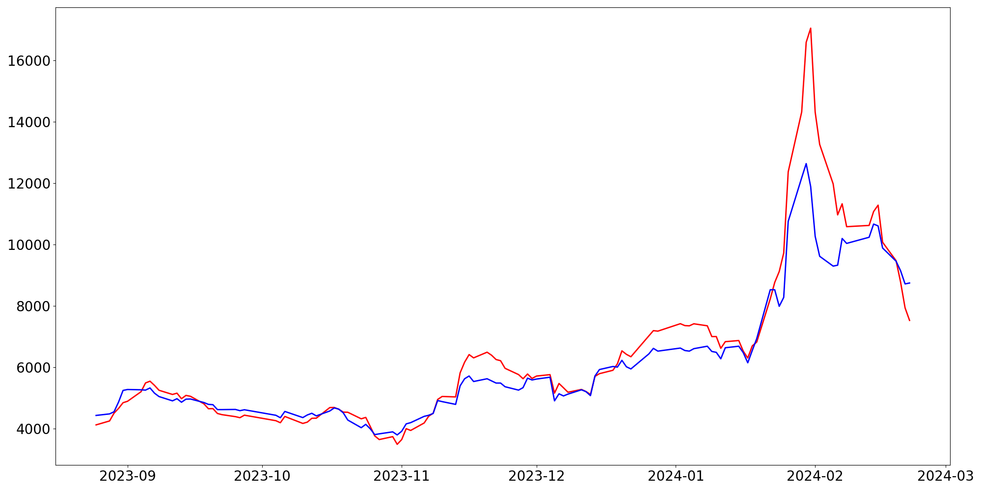 [ - : 실제값(종가) / - : 예측값(종가) ]