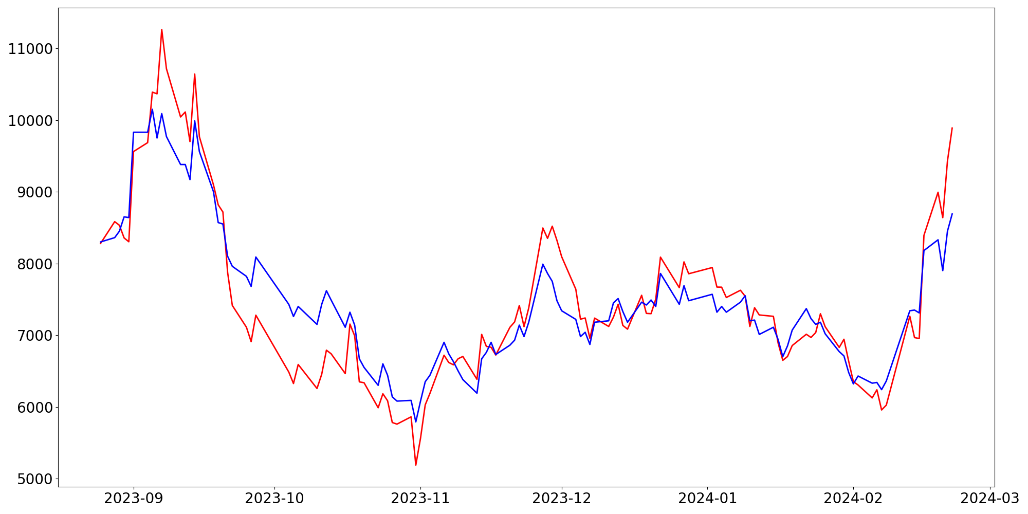 [ - : 실제값(종가) / - : 예측값(종가) ]