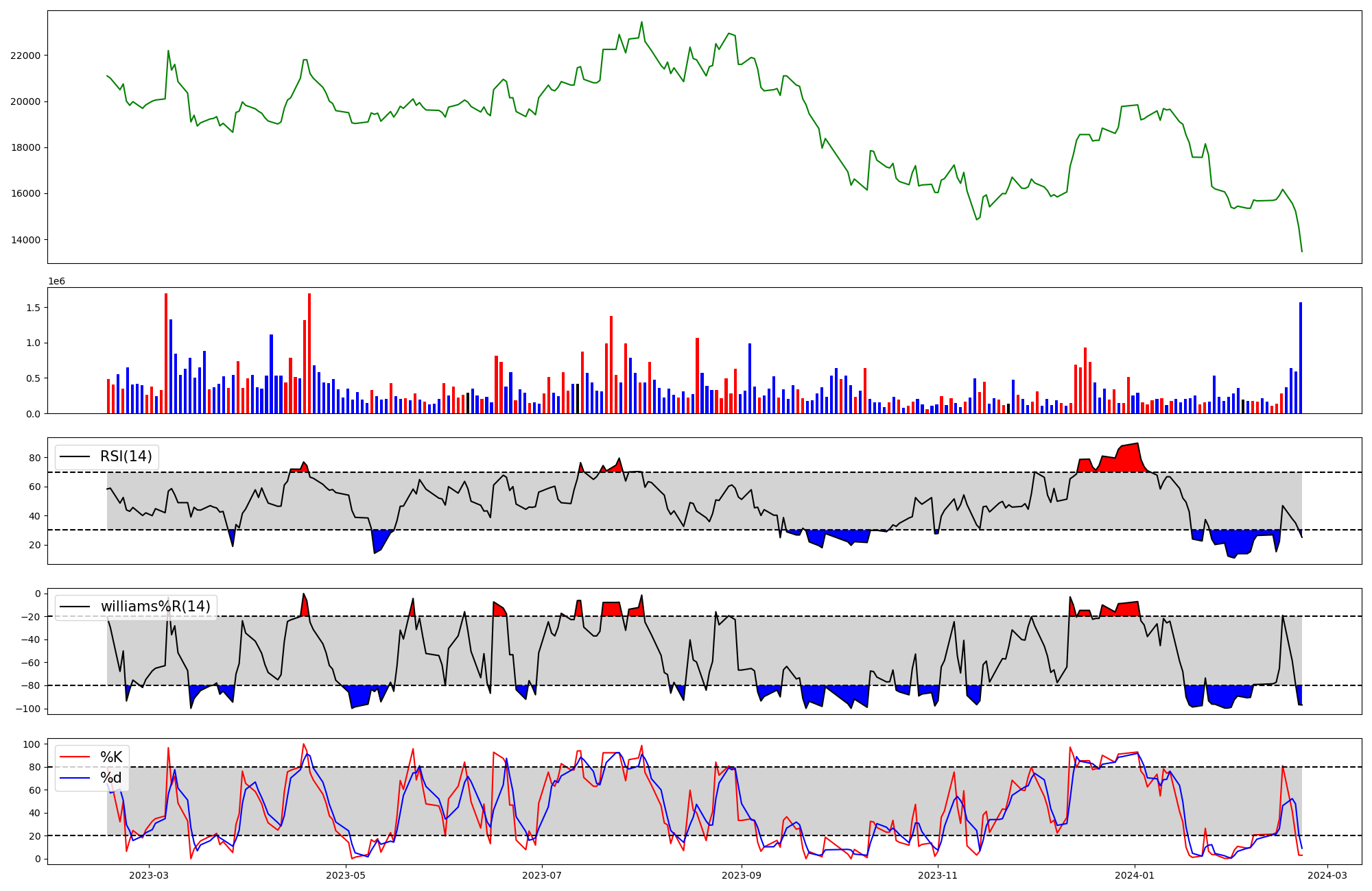 | RSI | Williams %R | stochastic(%K) | |
