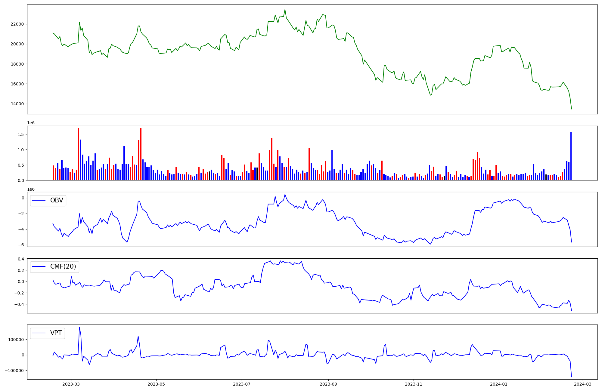 | OBV | CMF | VPT | |