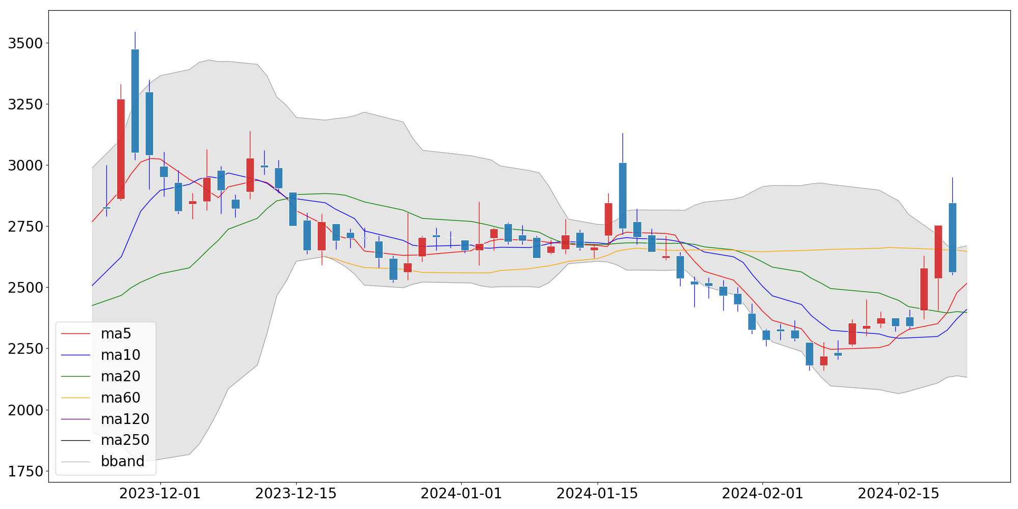 | 단순이동평균 | 2,515.00 | 2,409.00 | 2,396.75 |