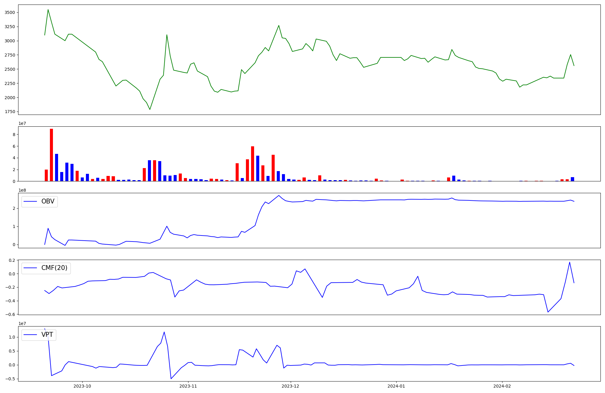 | OBV | CMF | VPT | |