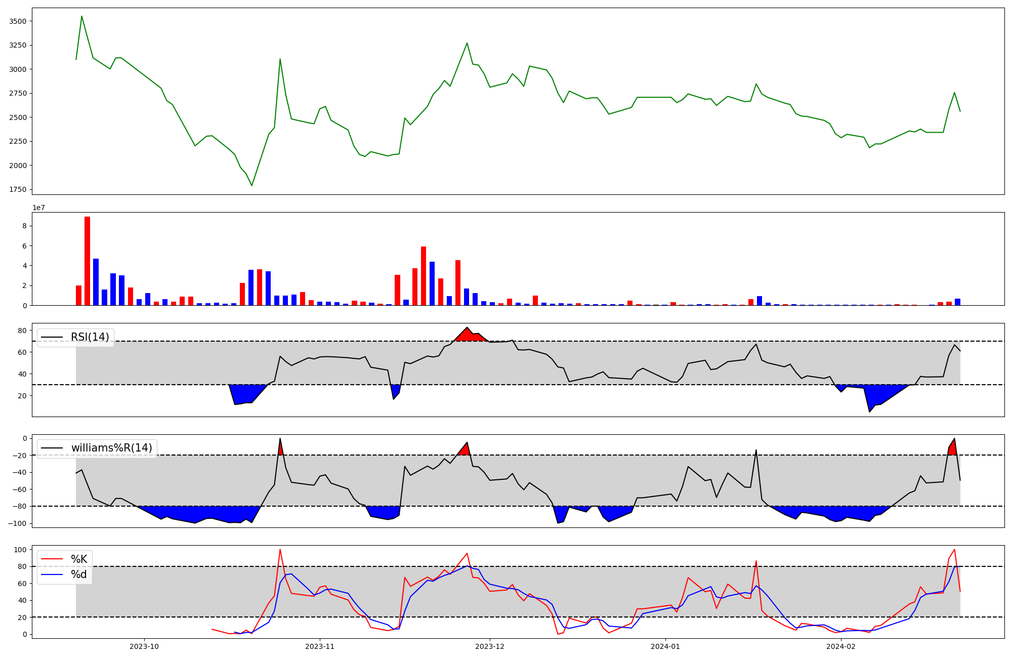 | RSI | Williams %R | stochastic(%K) | |