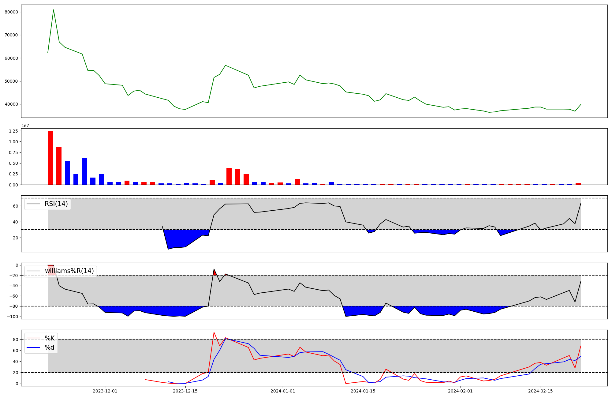 | RSI | Williams %R | stochastic(%K) | |