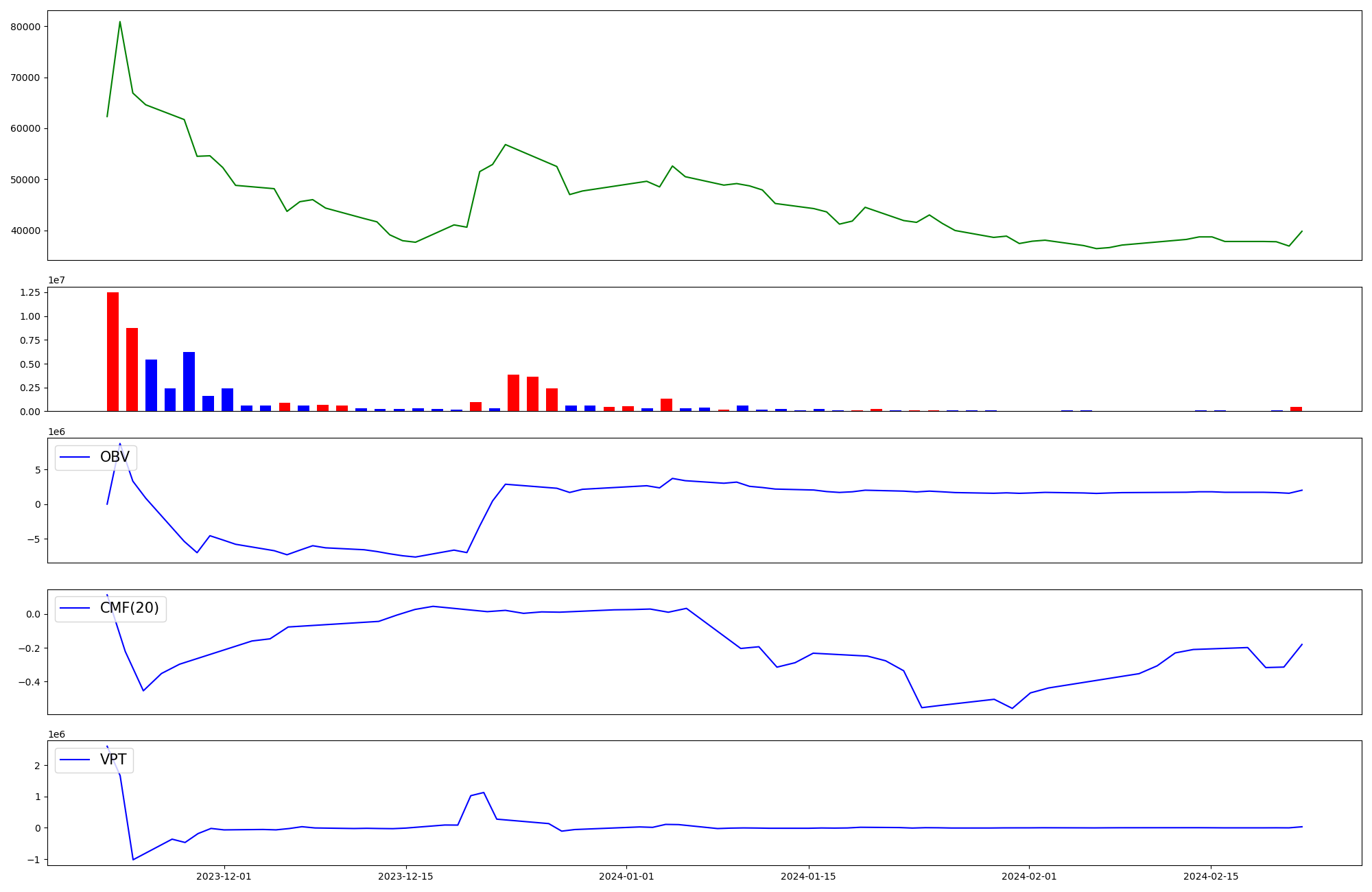 | OBV | CMF | VPT | |