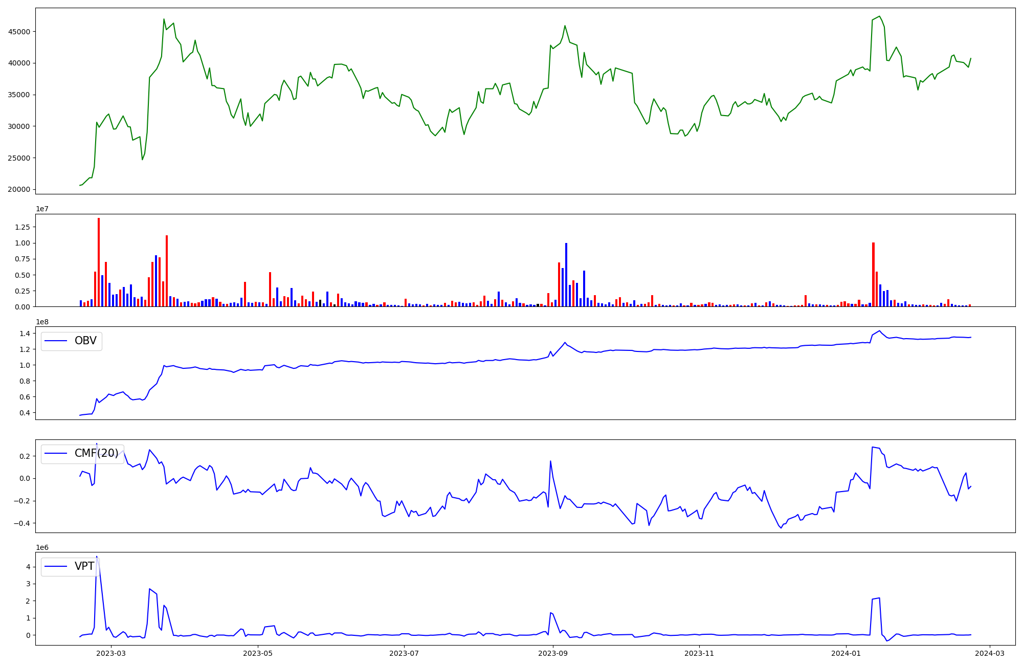 | OBV | CMF | VPT | |
