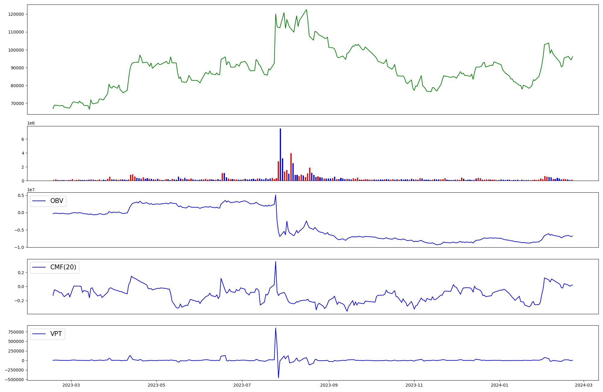 | OBV | CMF | VPT | |
