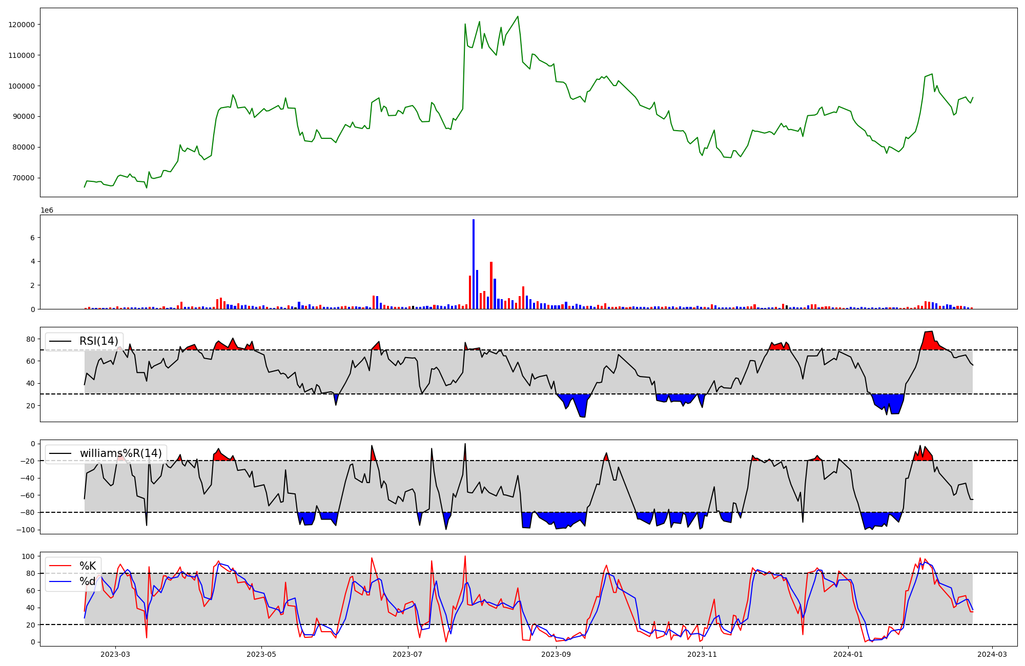 | RSI | Williams %R | stochastic(%K) | |