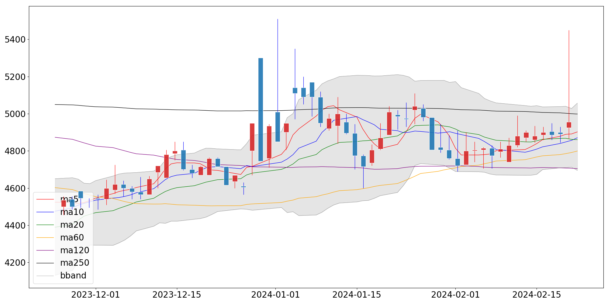 □ 오늘의 종가 : 4,955 (+65, +1.33%)