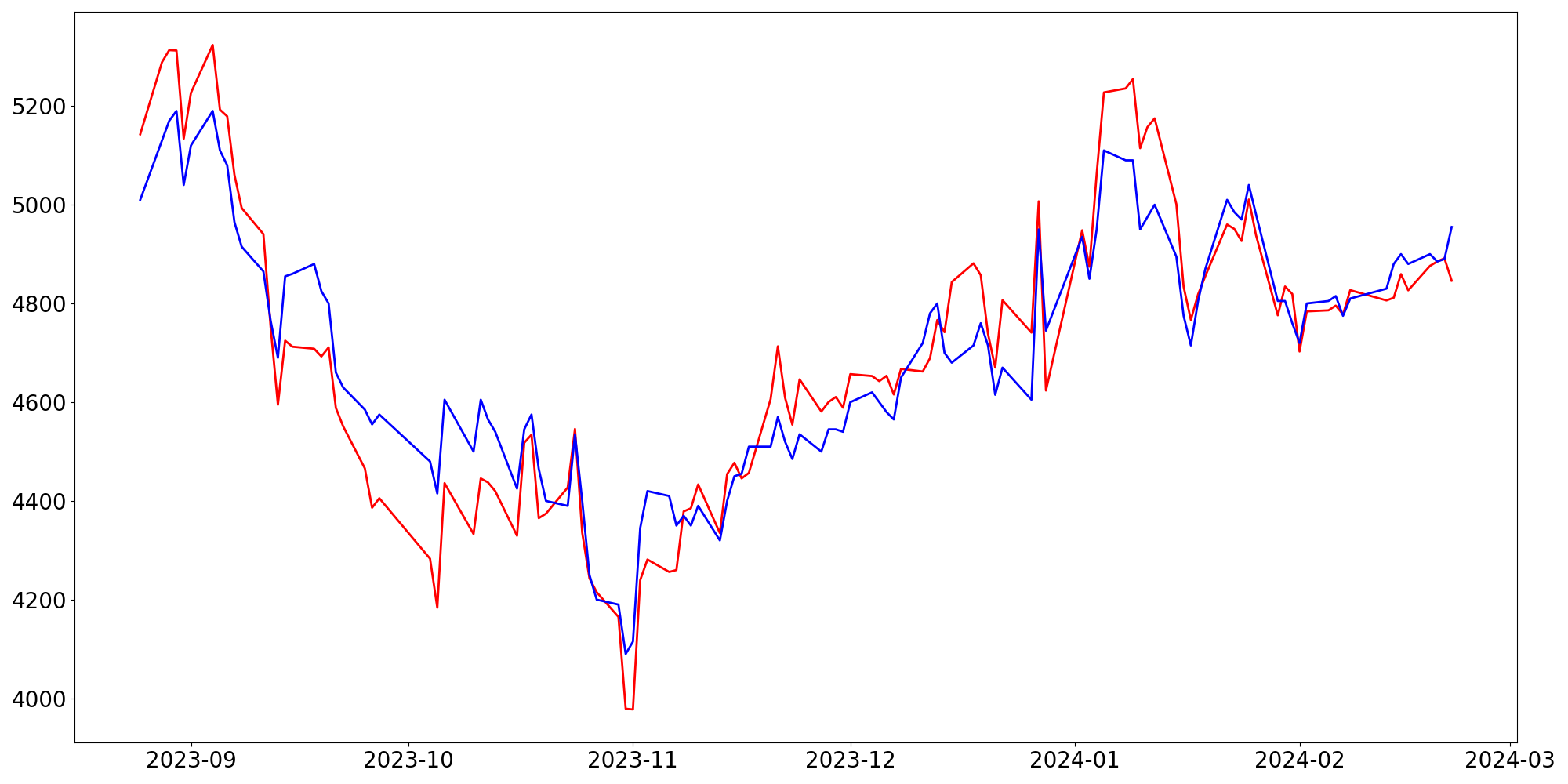 [ - : 실제값(종가) / - : 예측값(종가) ]