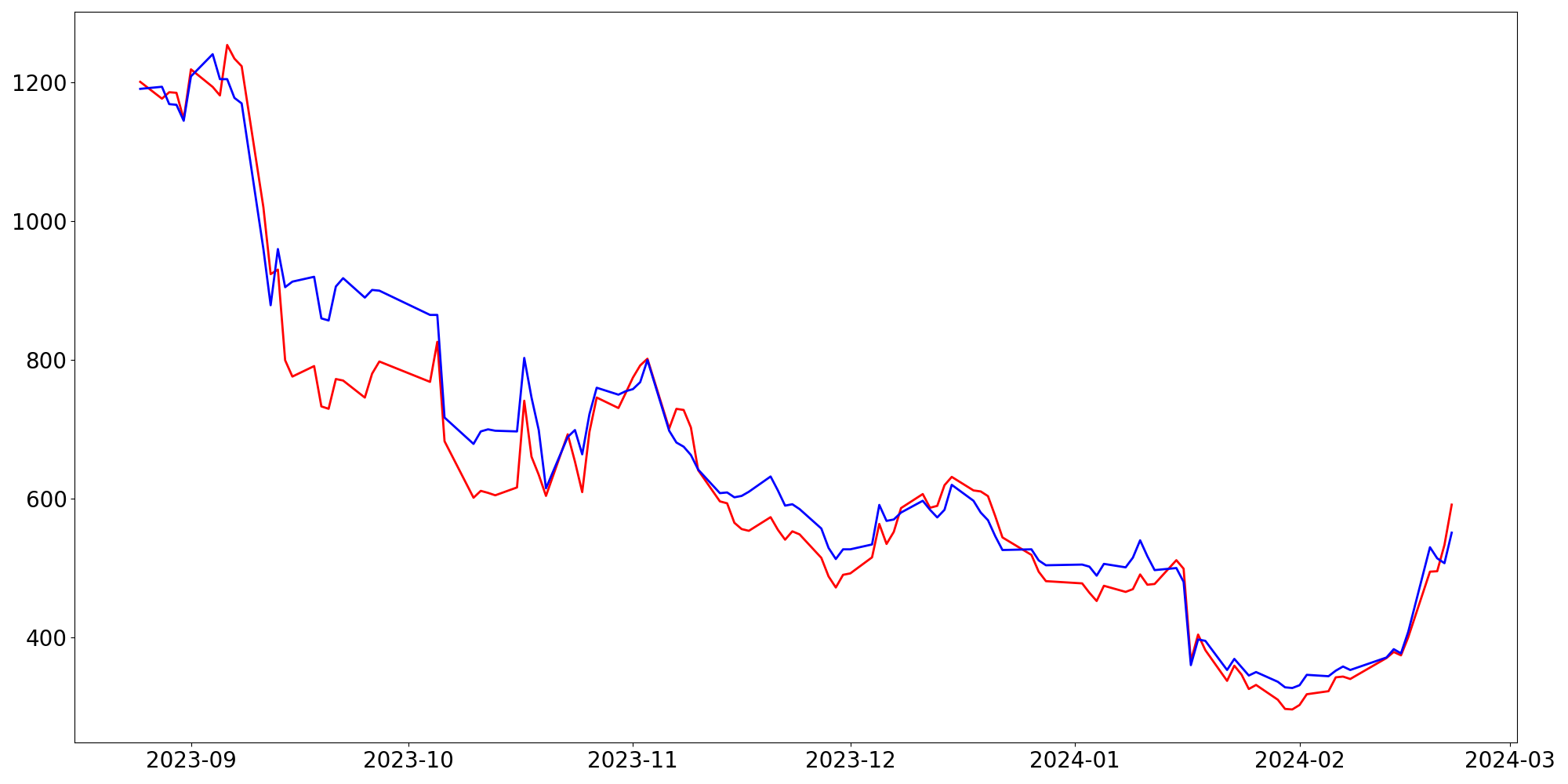 [ - : 실제값(종가) / - : 예측값(종가) ]