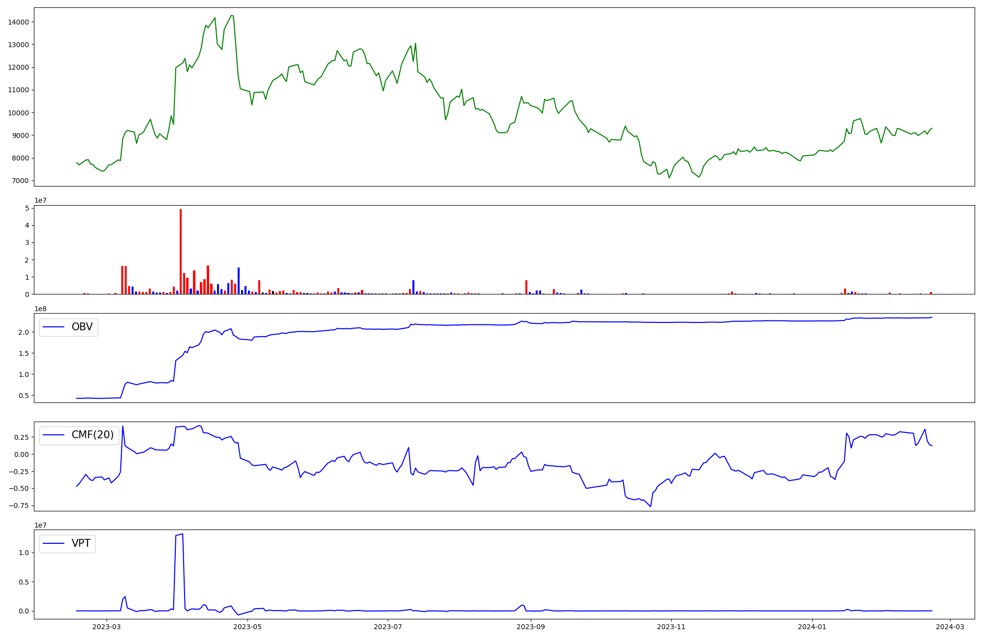 | OBV | CMF | VPT | |