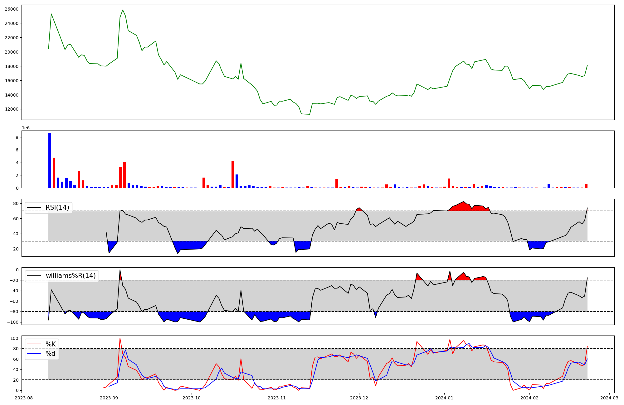 | RSI | Williams %R | stochastic(%K) | |