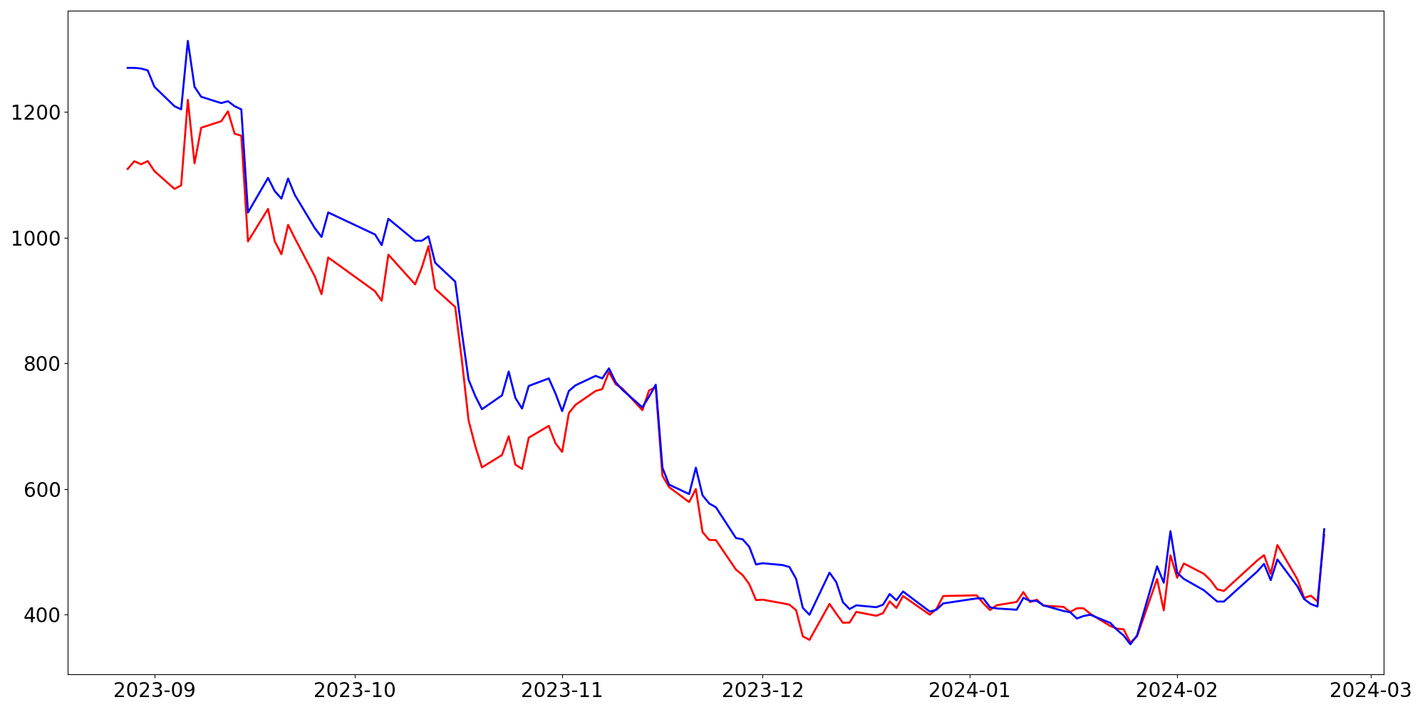[ - : 실제값(종가) / - : 예측값(종가) ]