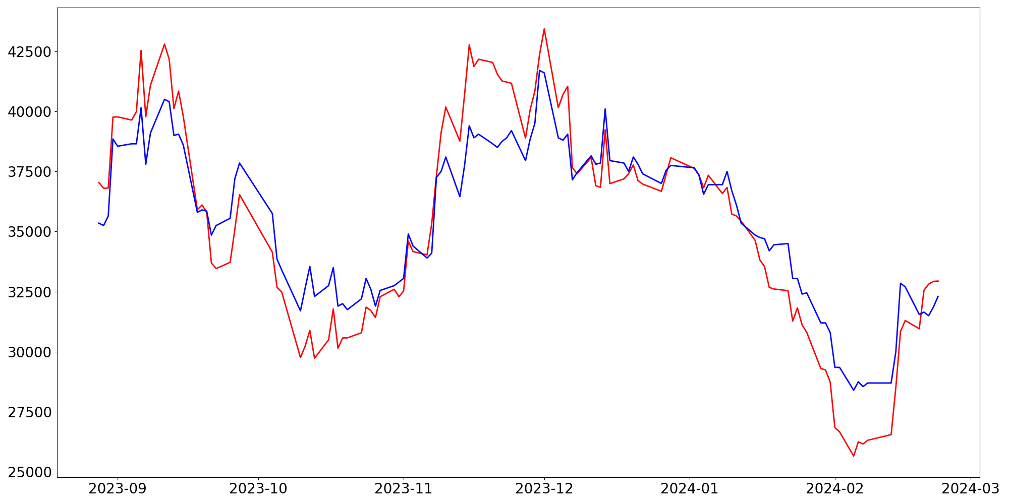 [ - : 실제값(종가) / - : 예측값(종가) ]