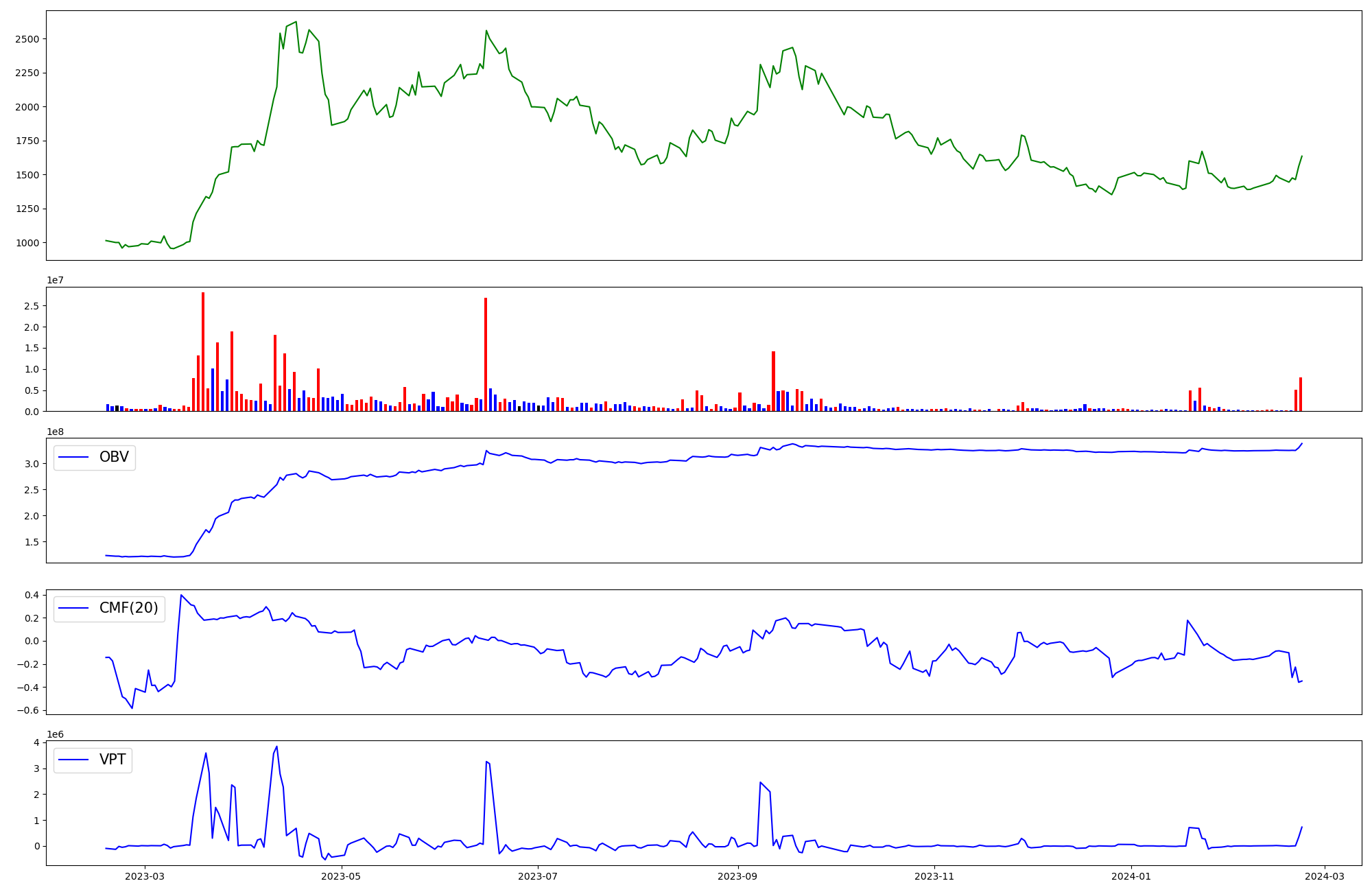 | OBV | CMF | VPT | |