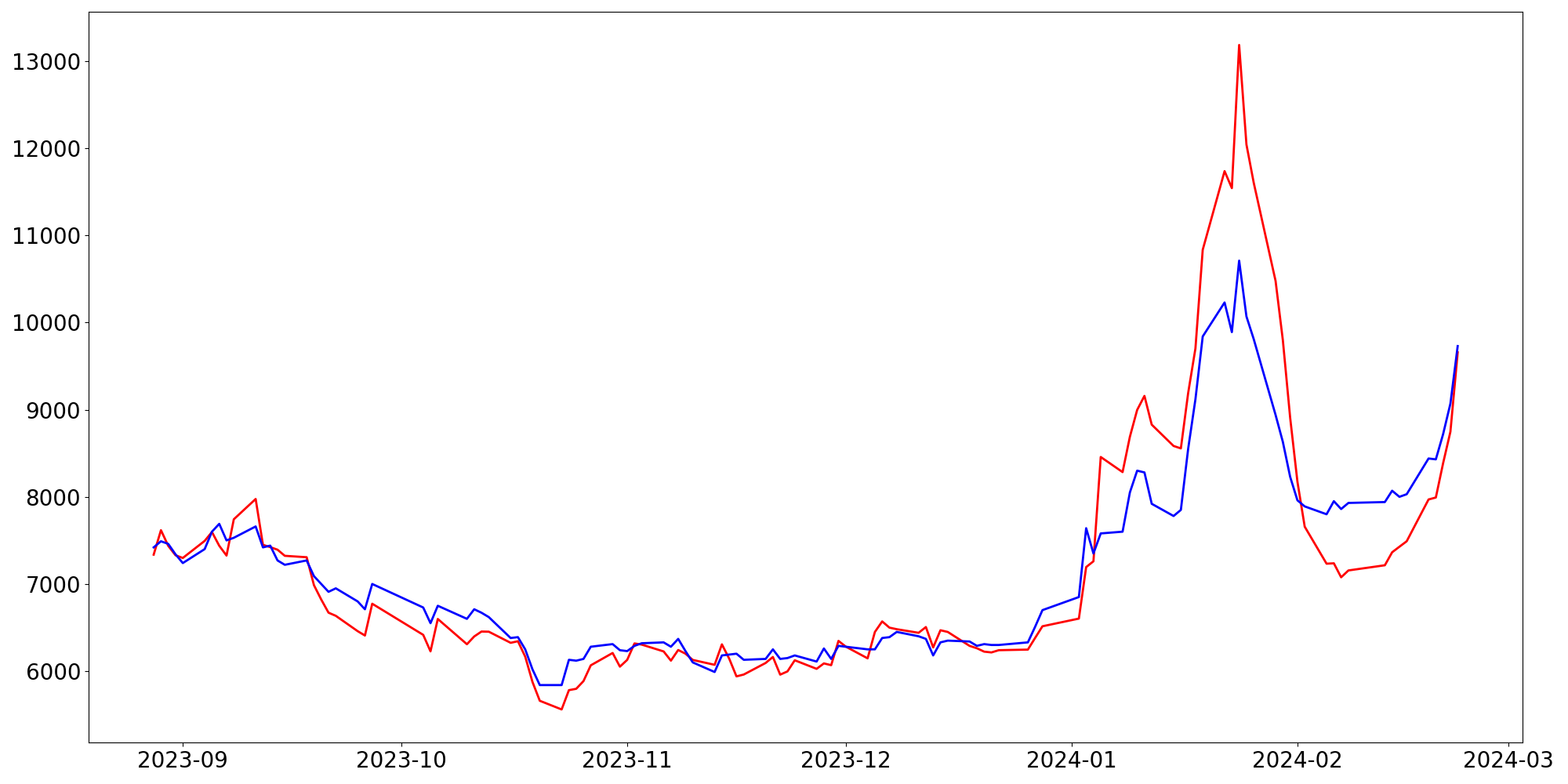 [ - : 실제값(종가) / - : 예측값(종가) ]
