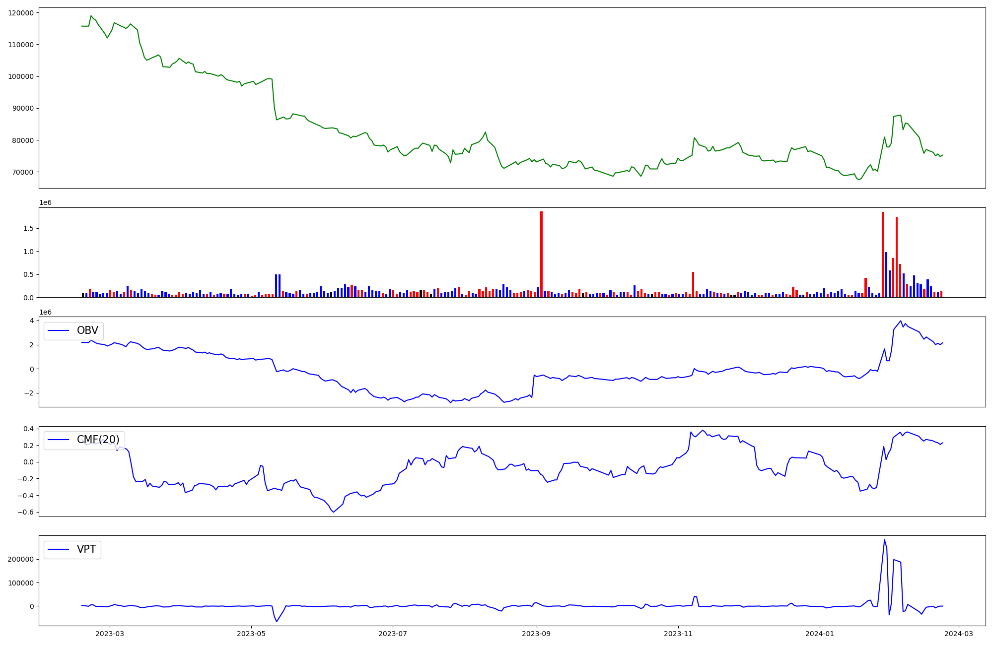 | OBV | CMF | VPT | |