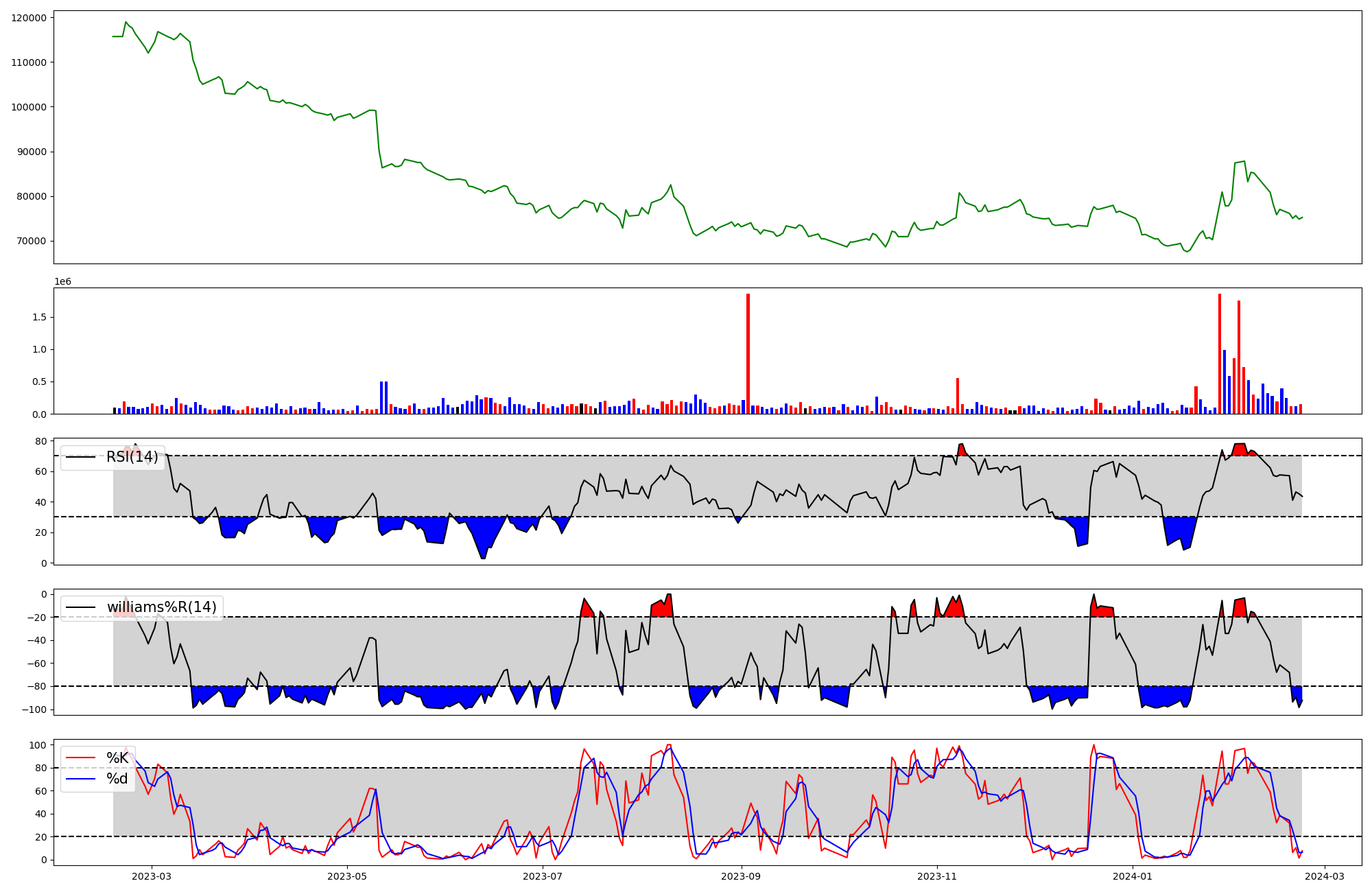 | RSI | Williams %R | stochastic(%K) | |
