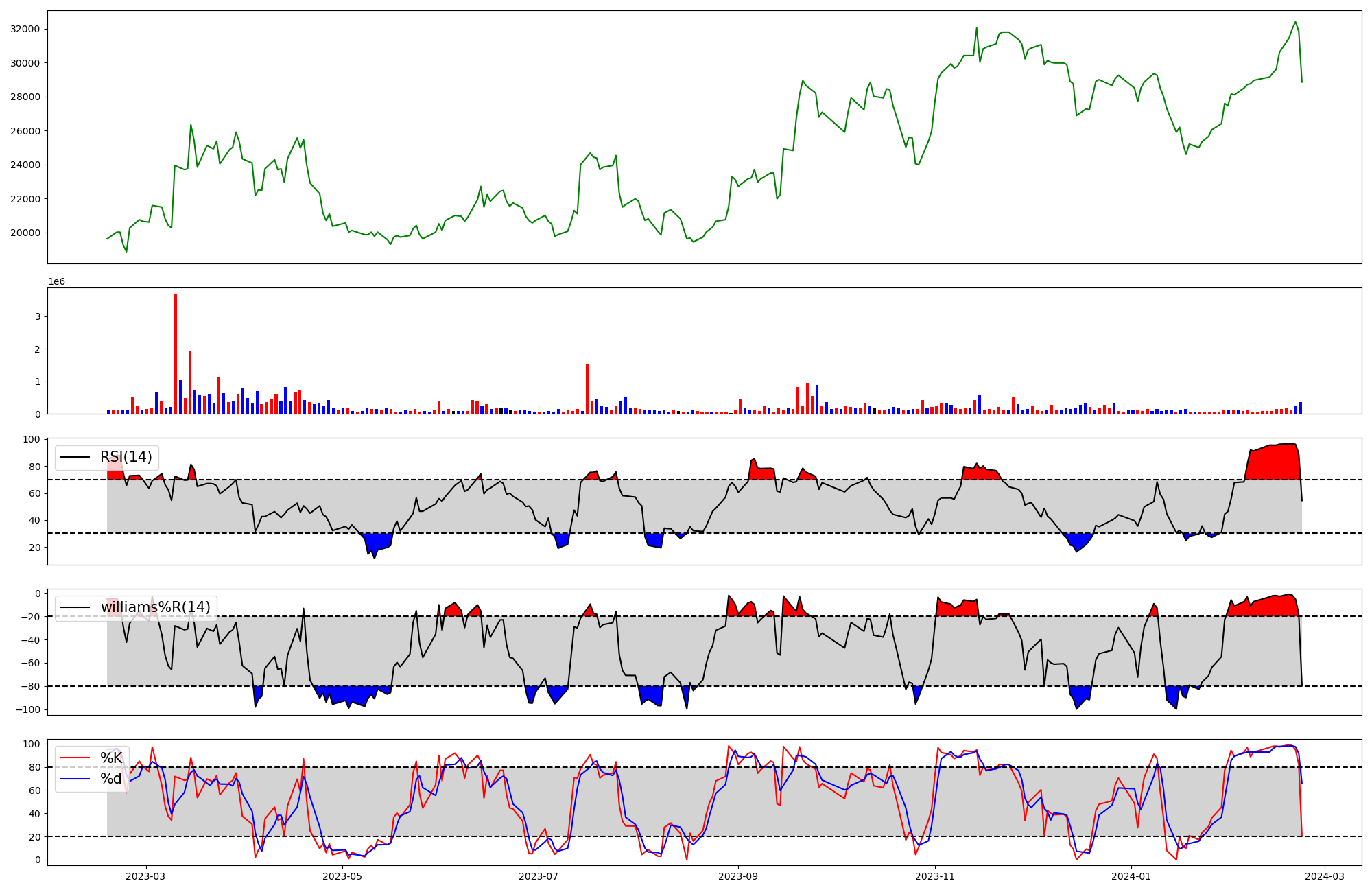 □ 중기 : 현재 종가가 중기(60일) 이동평균값(28,594원)을 상회 하여 중기적 추세 상승 중