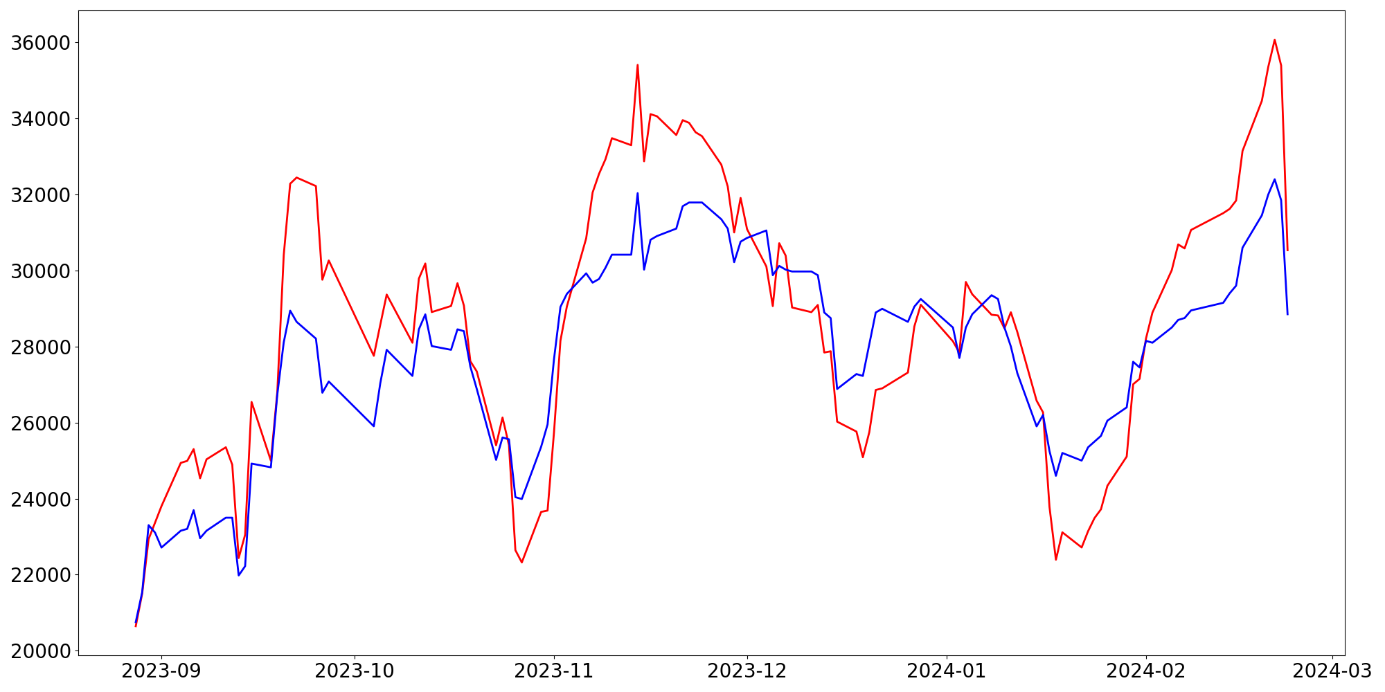 [ - : 실제값(종가) / - : 예측값(종가) ]