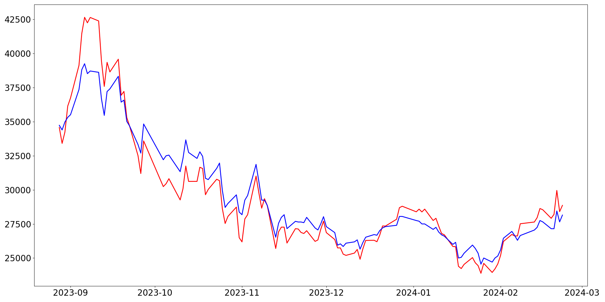 [ - : 실제값(종가) / - : 예측값(종가) ]