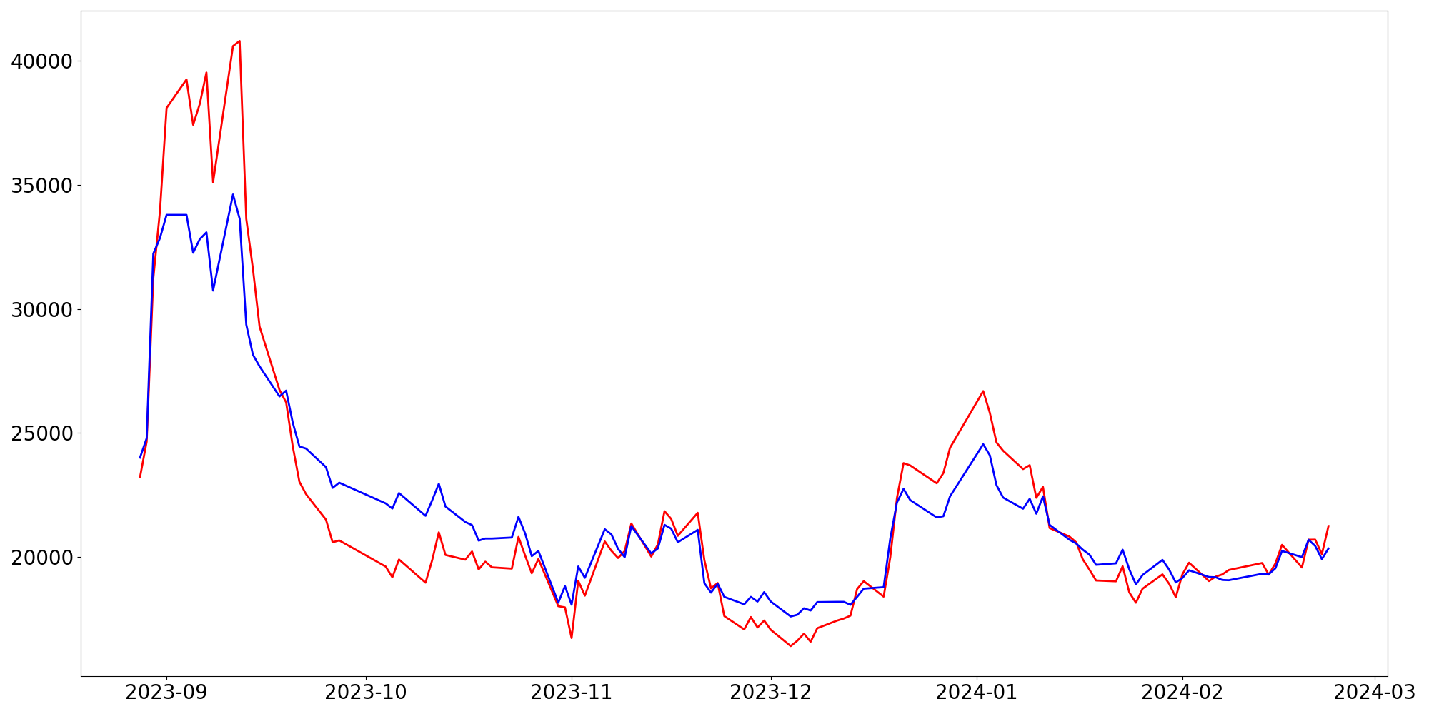 [ - : 실제값(종가) / - : 예측값(종가) ]