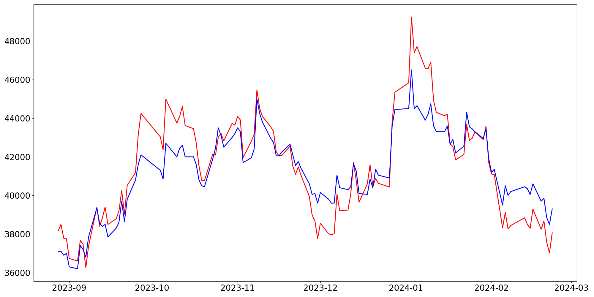 [ - : 실제값(종가) / - : 예측값(종가) ]