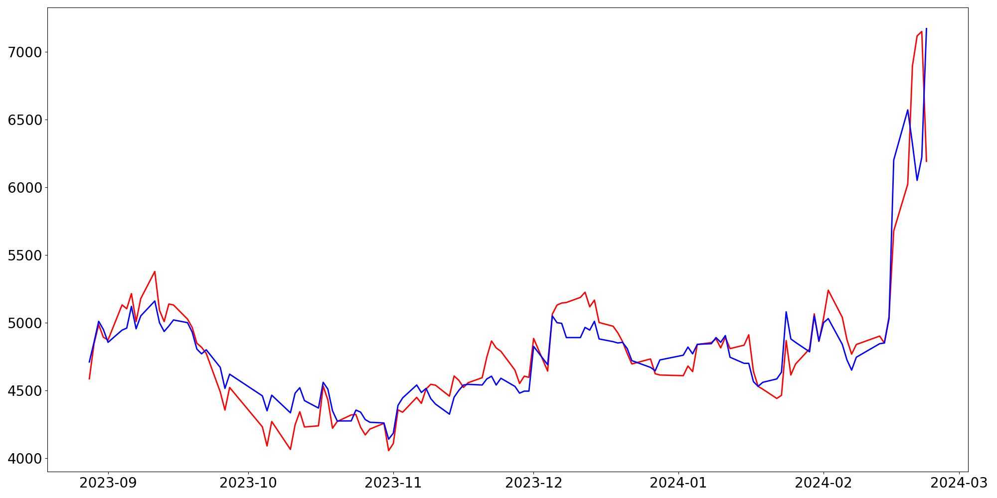 [ - : 실제값(종가) / - : 예측값(종가) ]