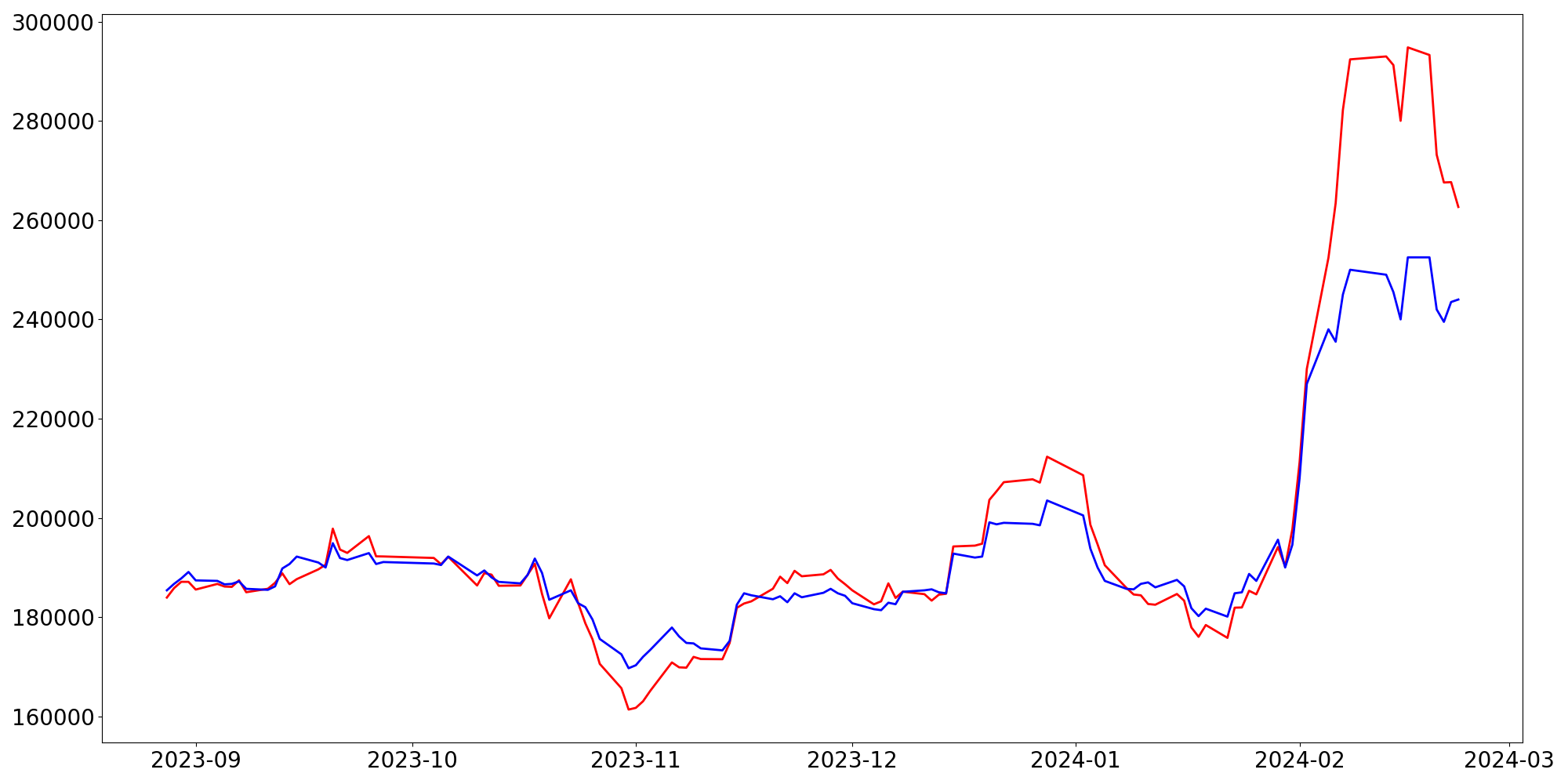 [ - : 실제값(종가) / - : 예측값(종가) ]