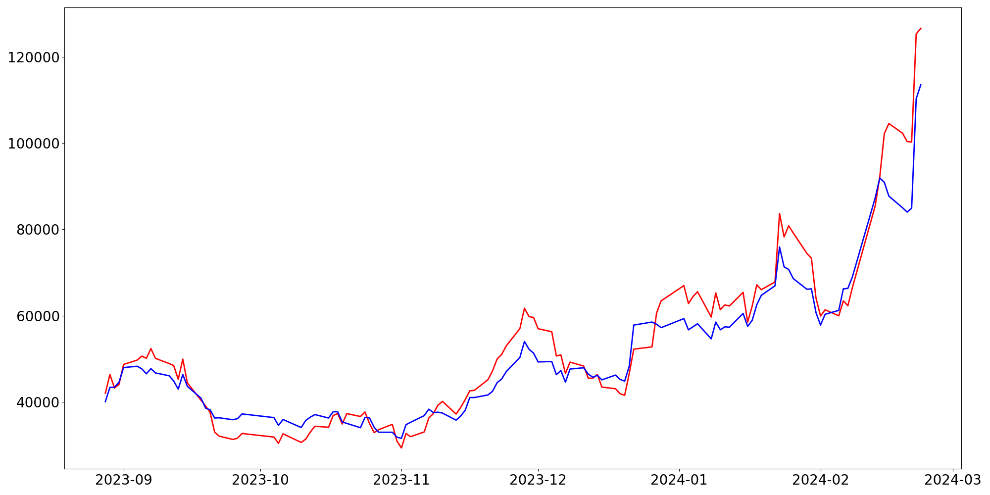 [ - : 실제값(종가) / - : 예측값(종가) ]