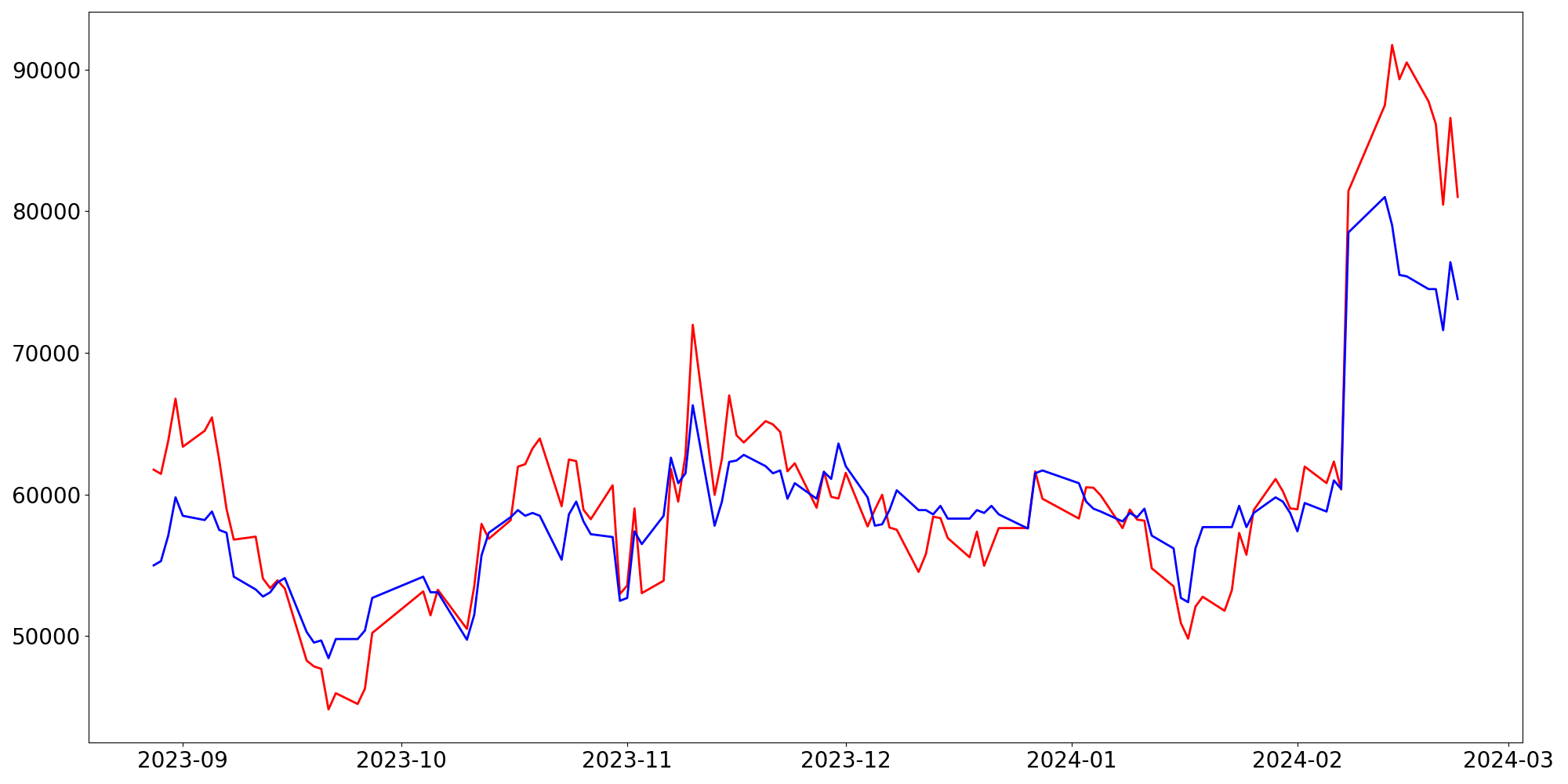 [ - : 실제값(종가) / - : 예측값(종가) ]