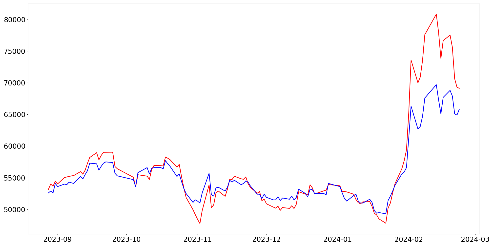 [ - : 실제값(종가) / - : 예측값(종가) ]