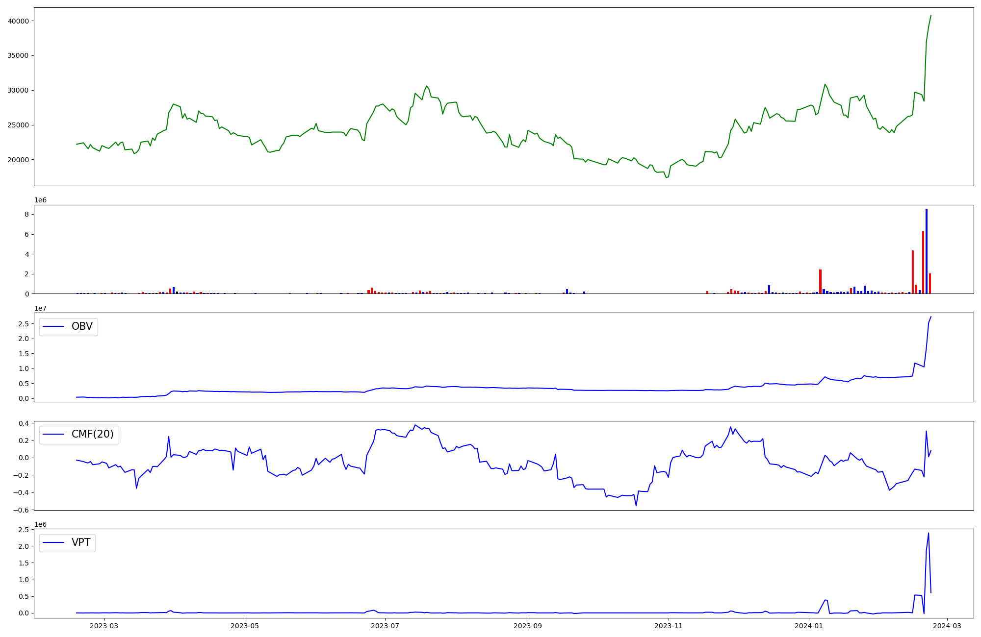 | OBV | CMF | VPT | |