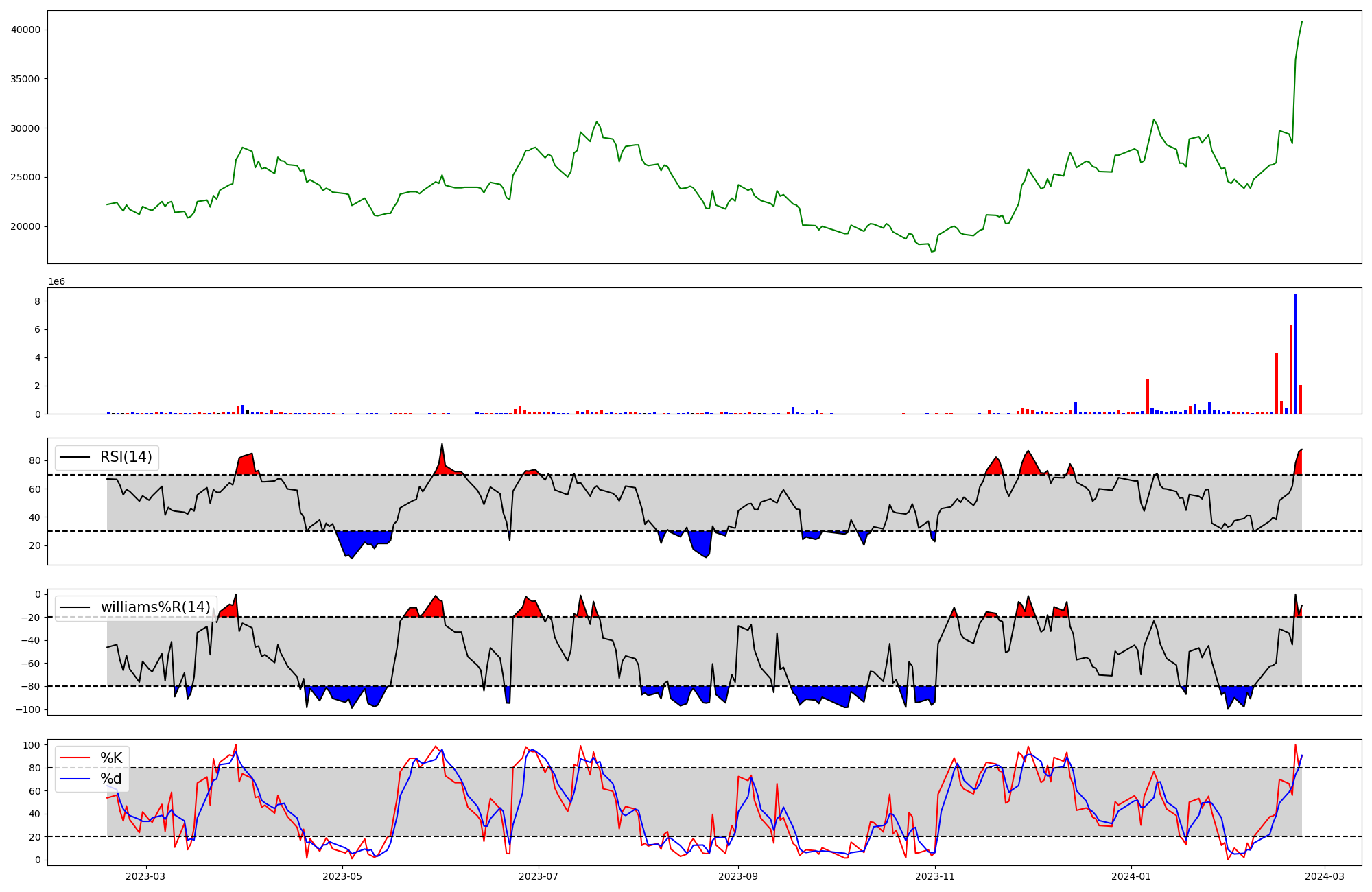 | RSI | Williams %R | stochastic(%K) | |
