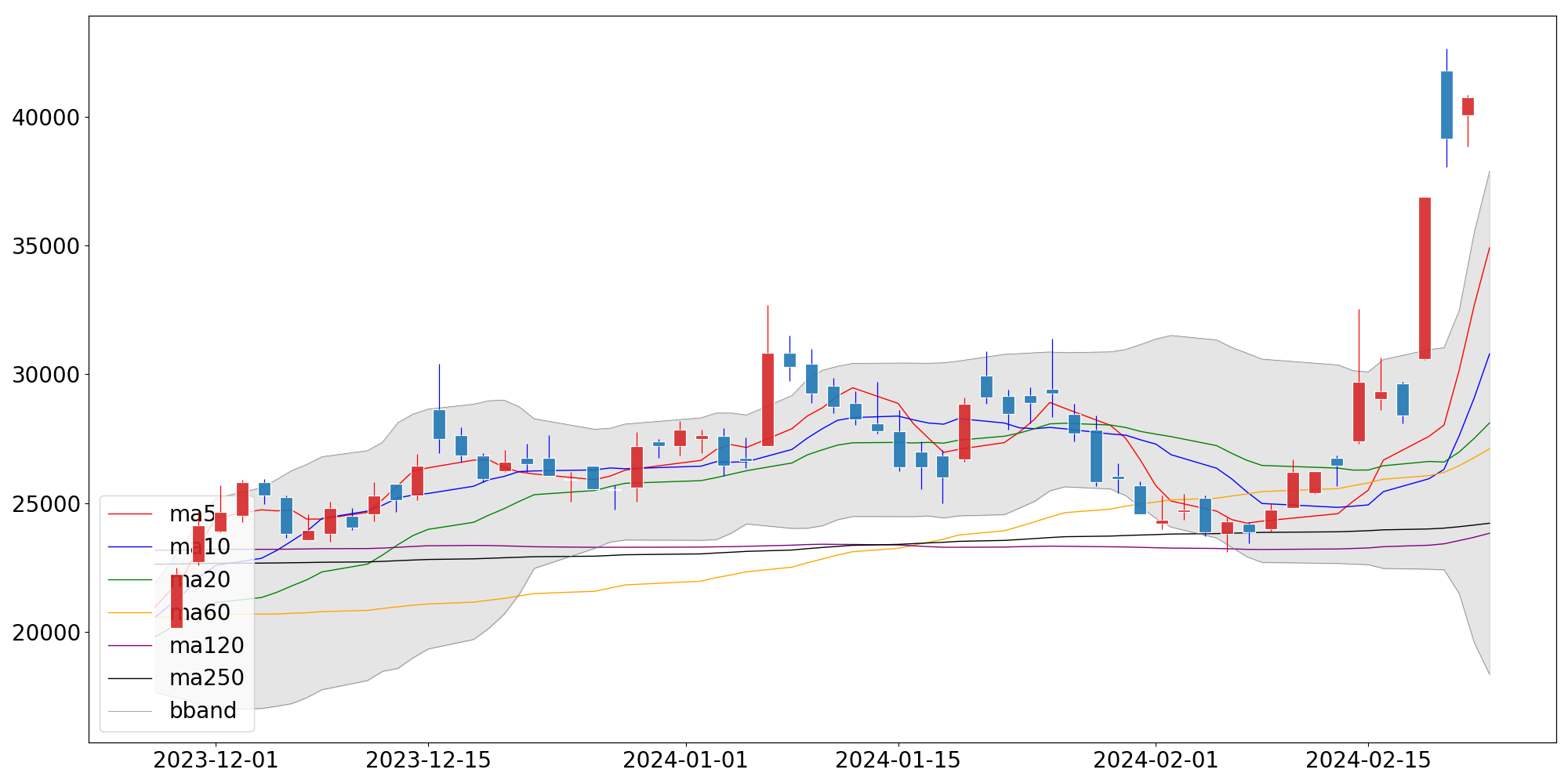 □ 오늘의 종가 : 40,750 (+1,600, +4.09%)