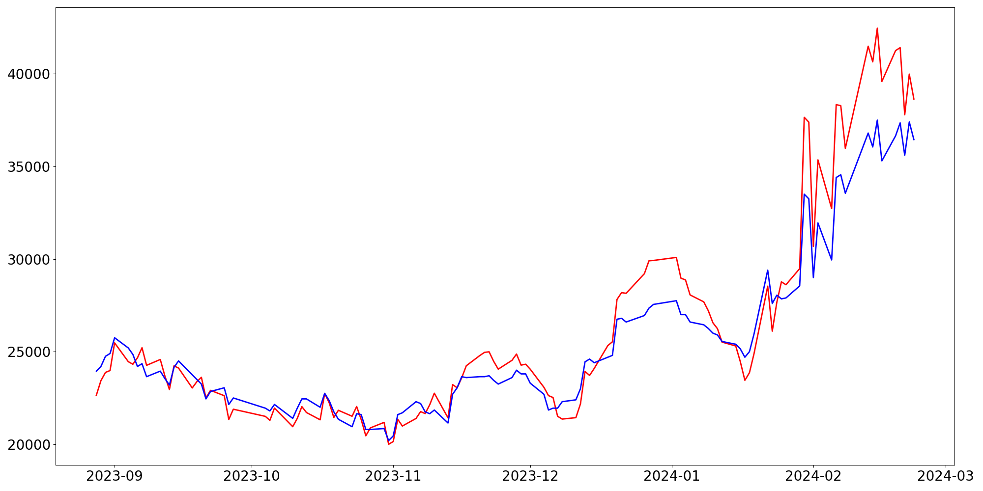 [ - : 실제값(종가) / - : 예측값(종가) ]